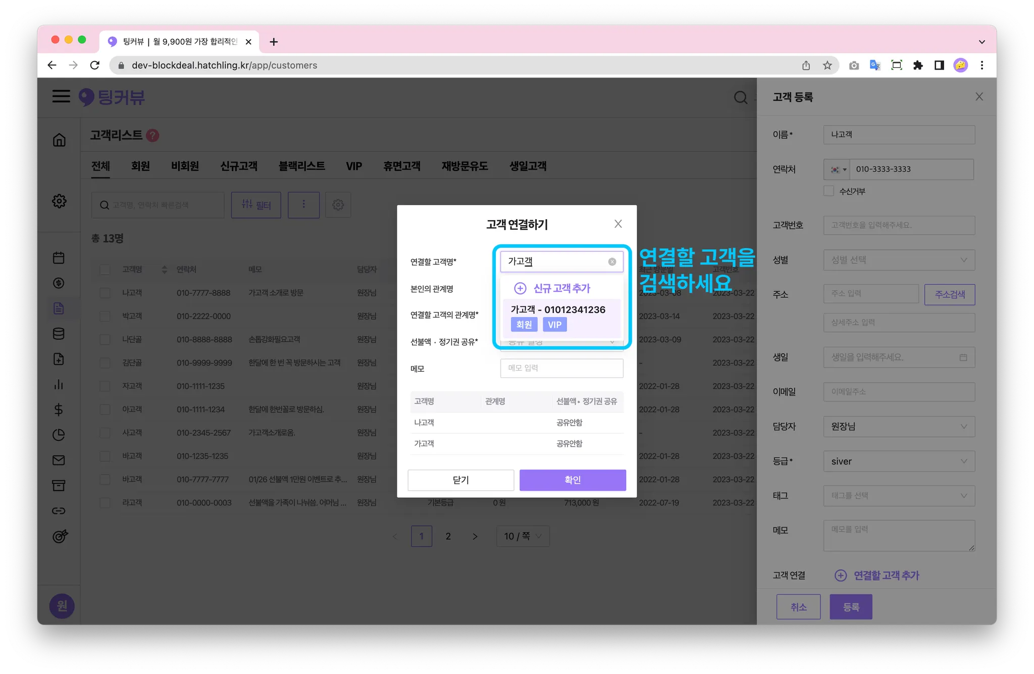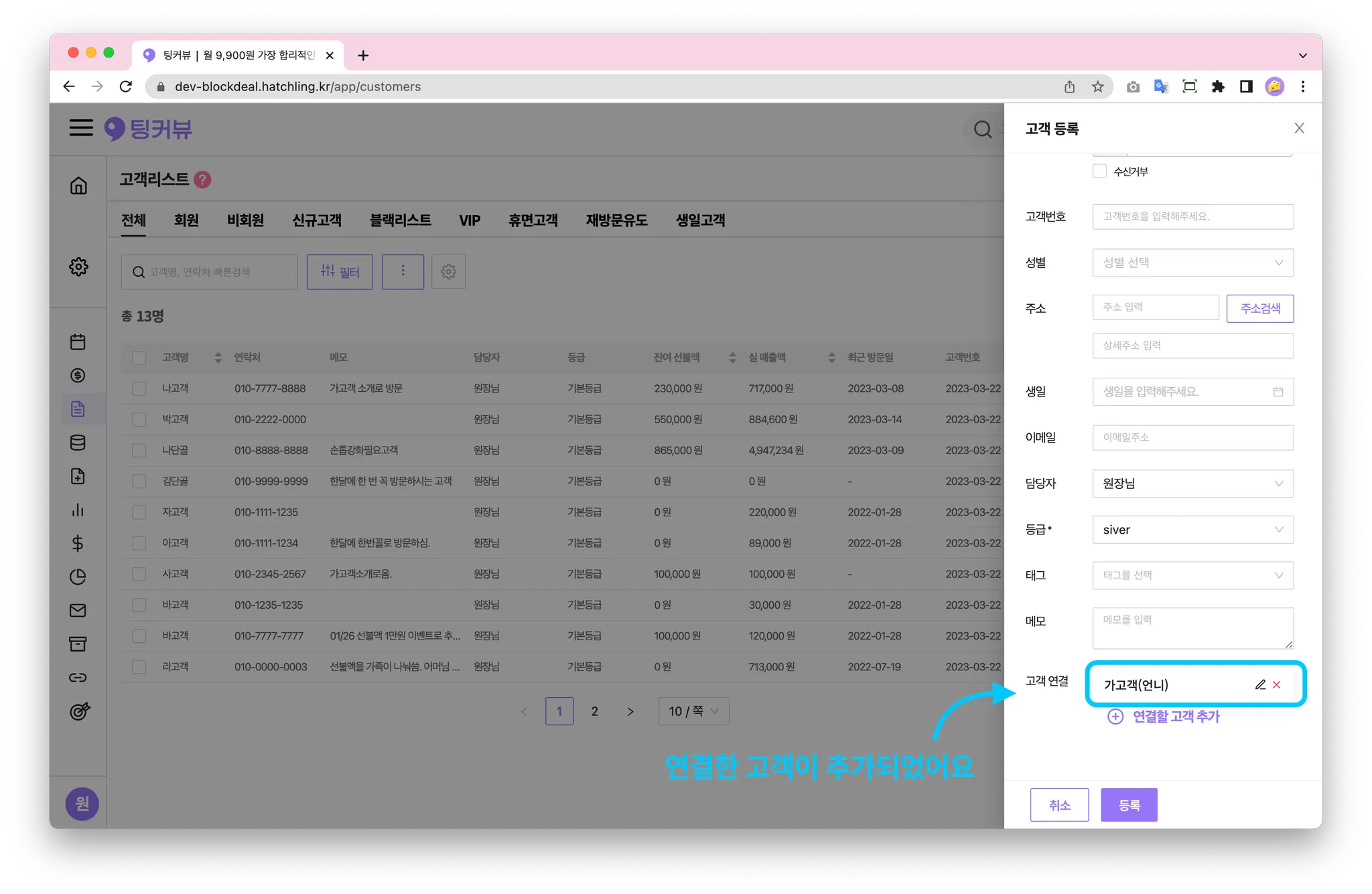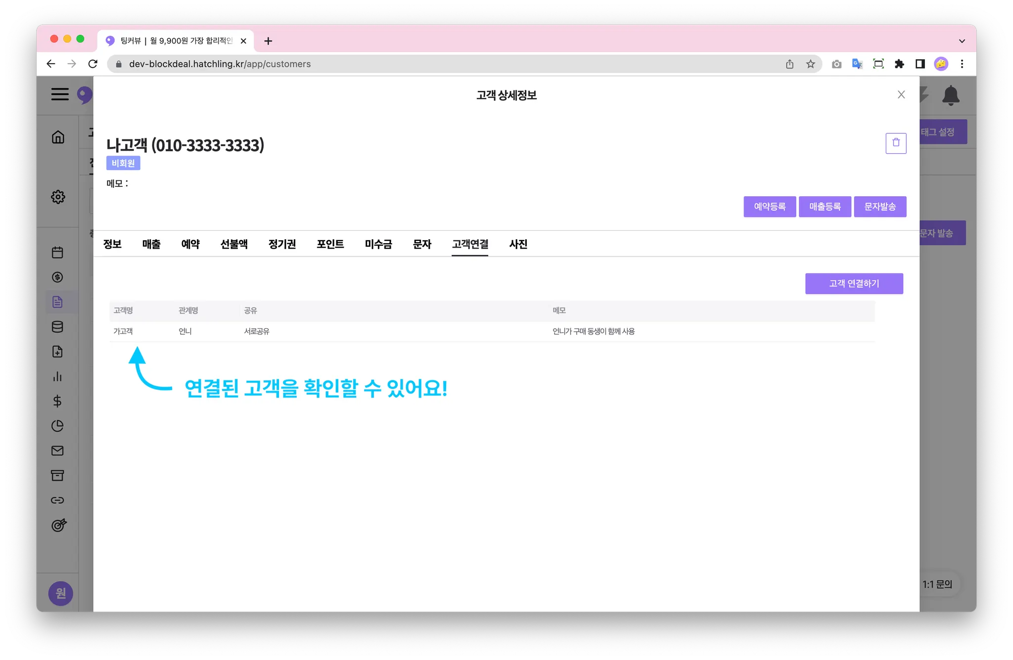 신규고객 등록시 고객을 연결하고 싶다면, 고객 연결 기능을 이용해보세요!