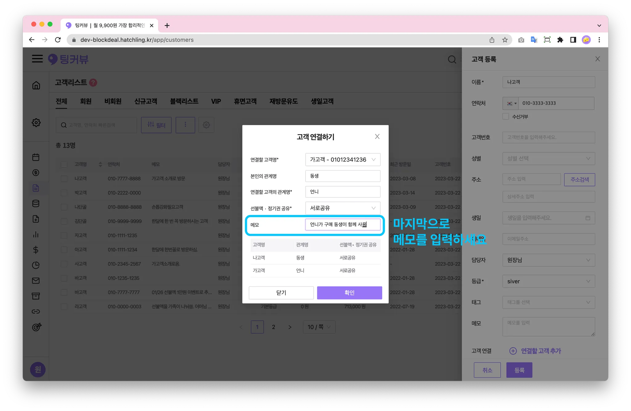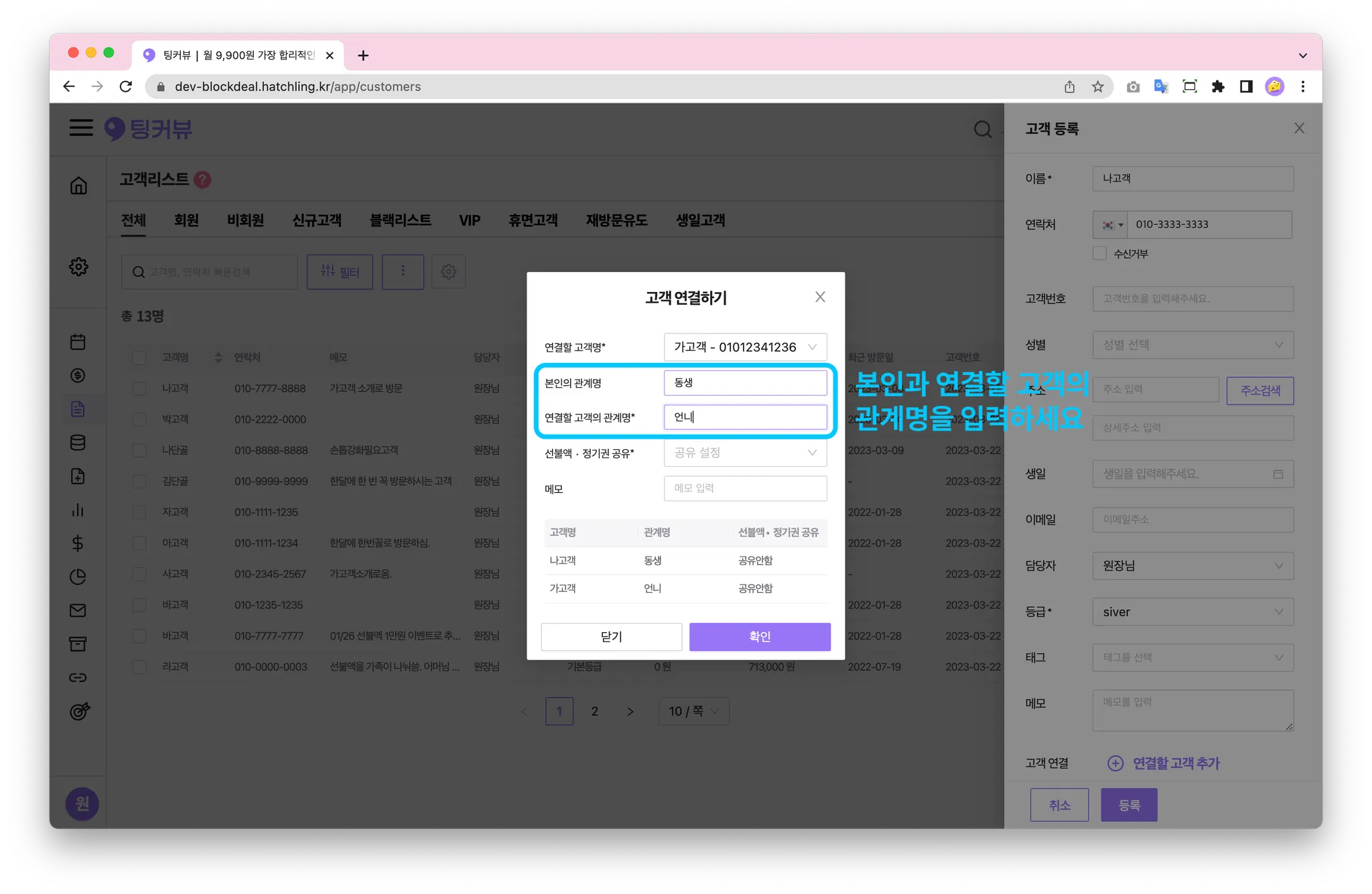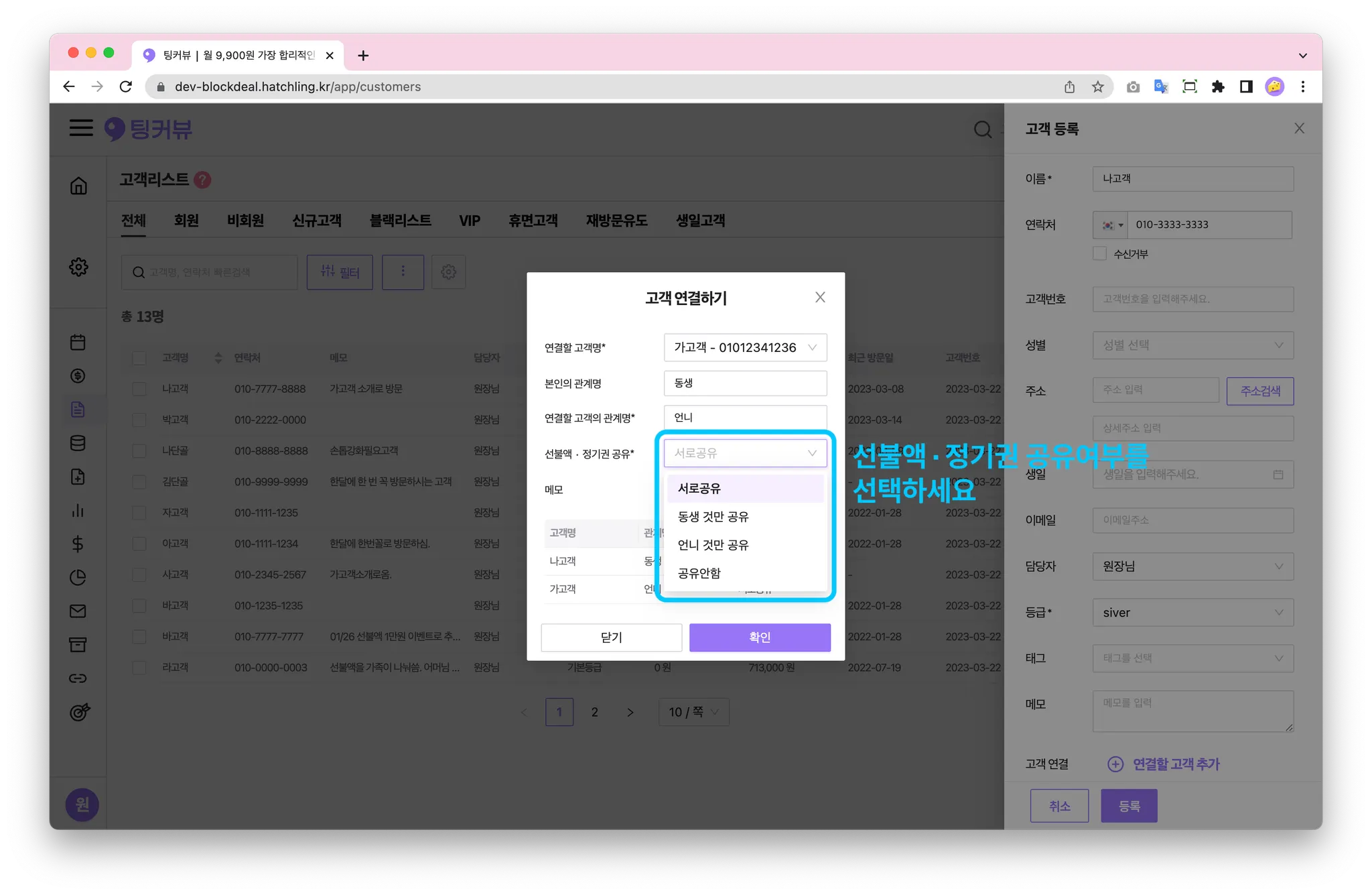 신규고객 등록시 고객을 연결하고 싶다면, 고객 연결 기능을 이용해보세요!