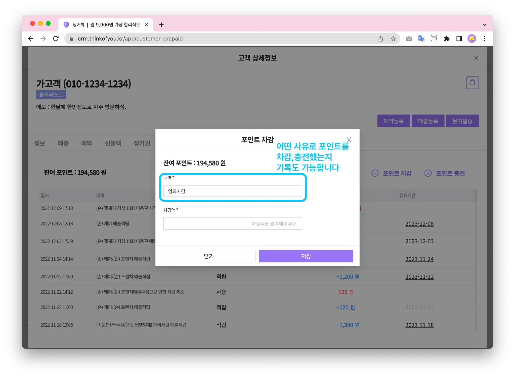 어떤 사유로 포인트를 조정했는지 기록도 가능합니다.