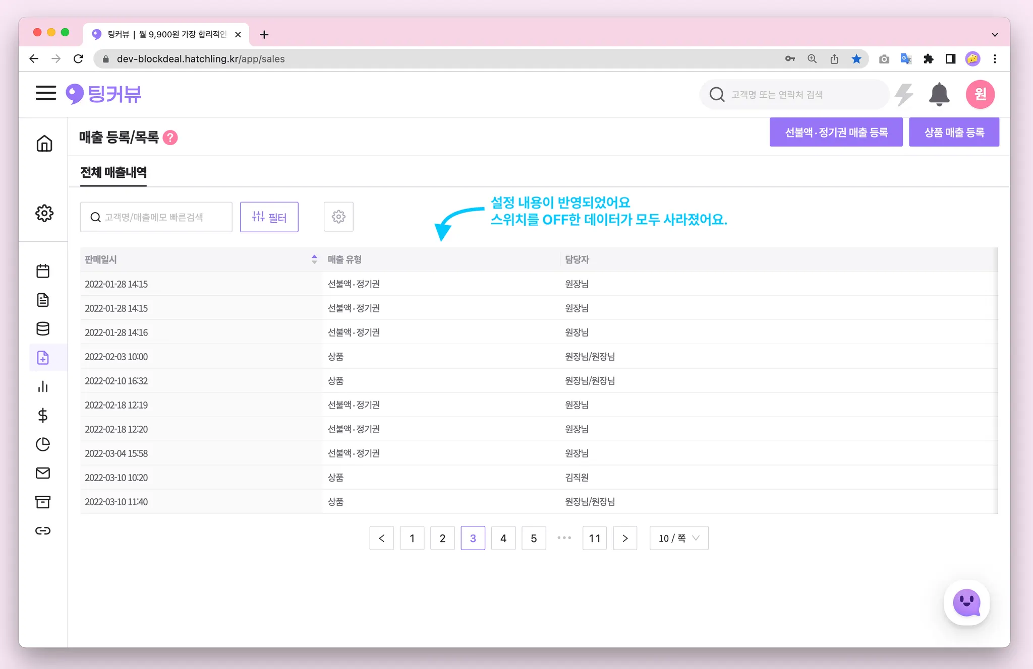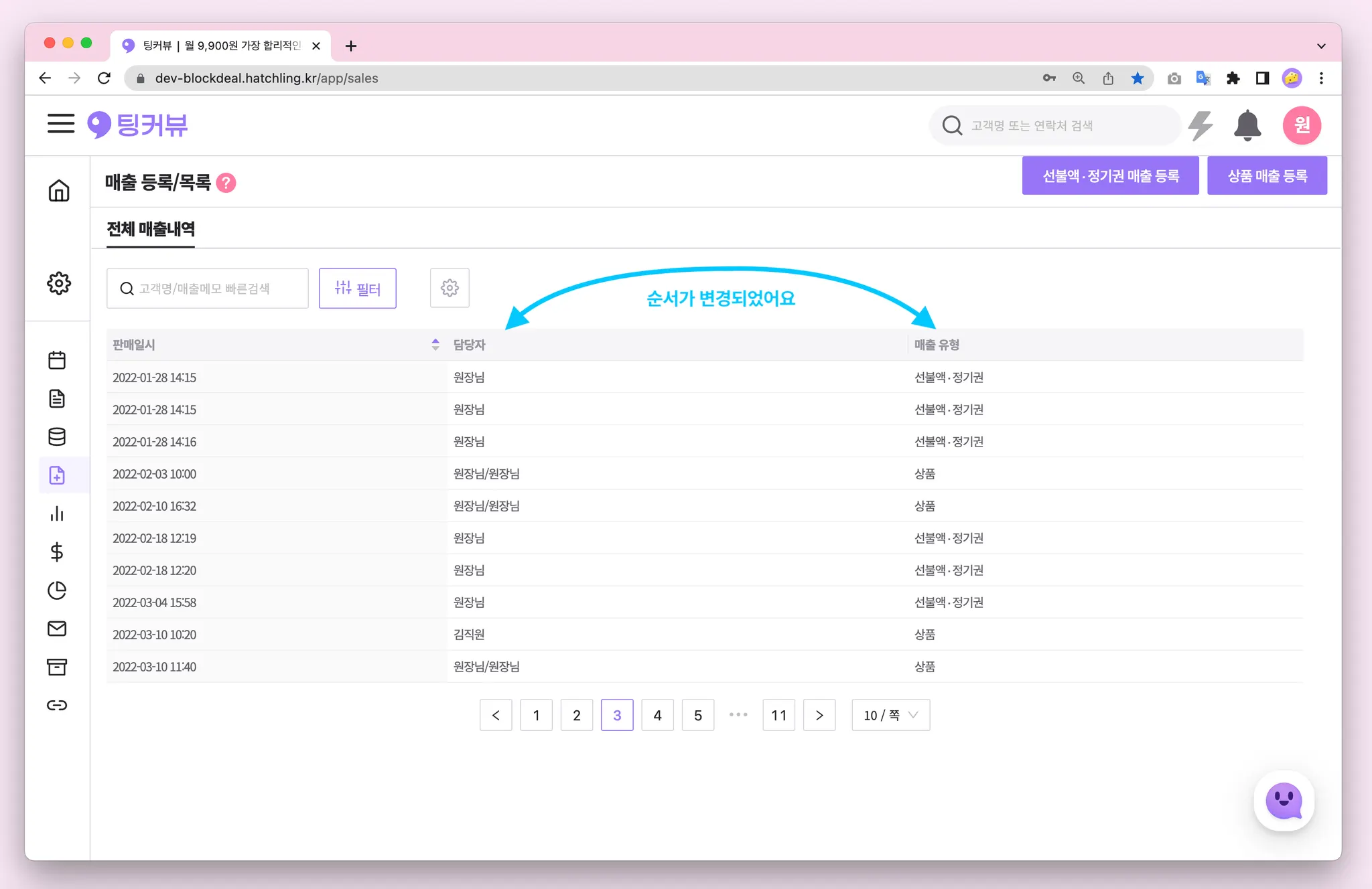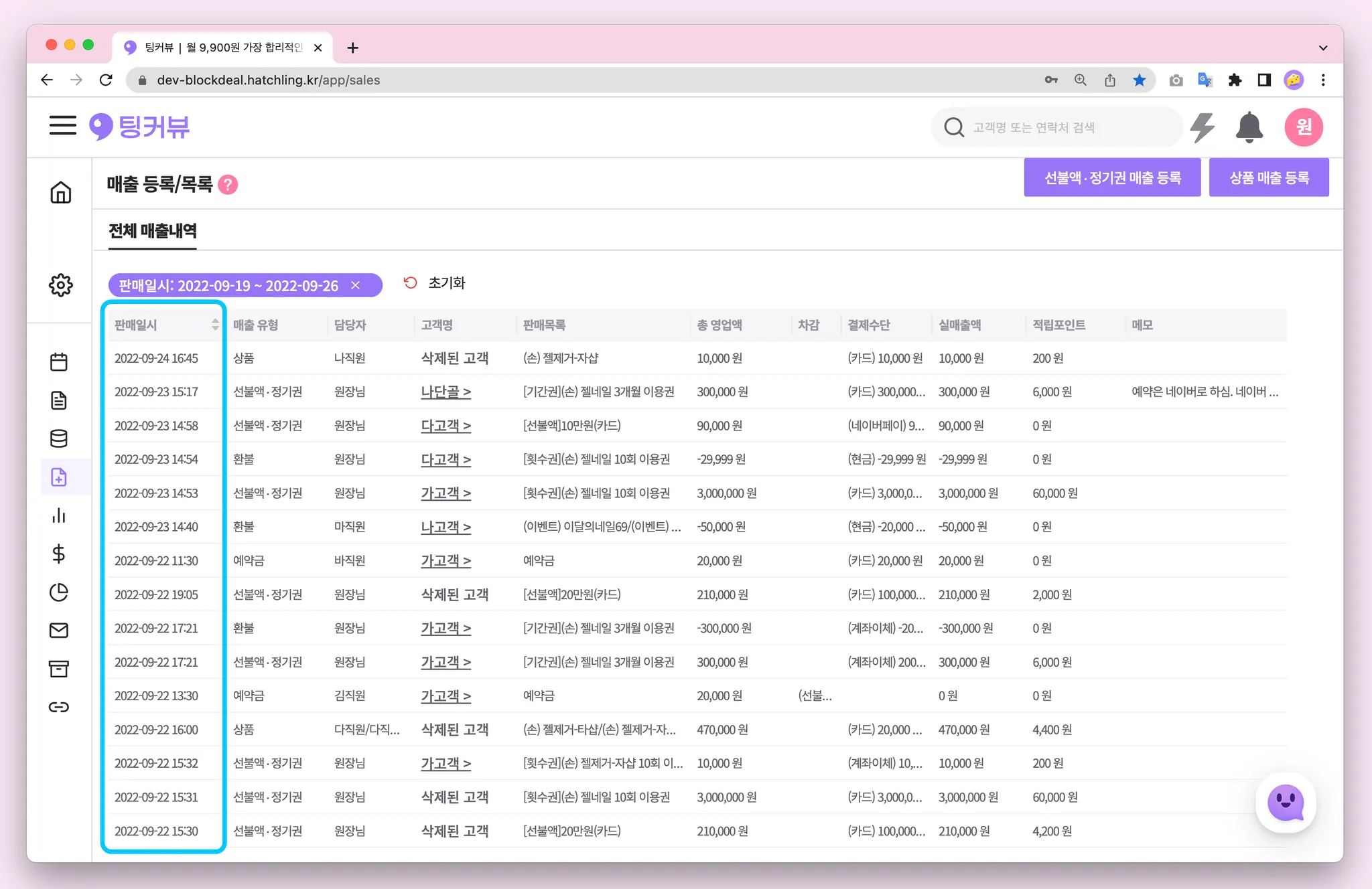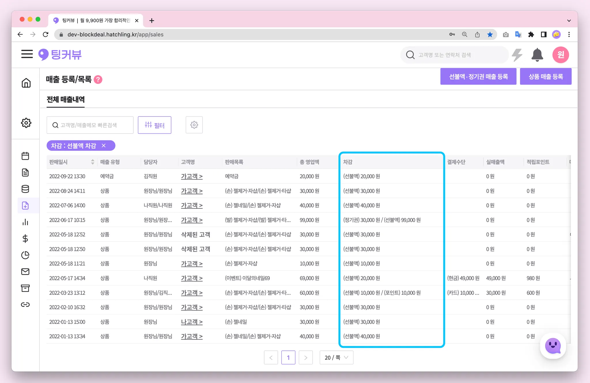 검색창에 고객명 또는 매출메모를 검색해보세요! 원하는 매출을 빠르게 검색할 수 있어요