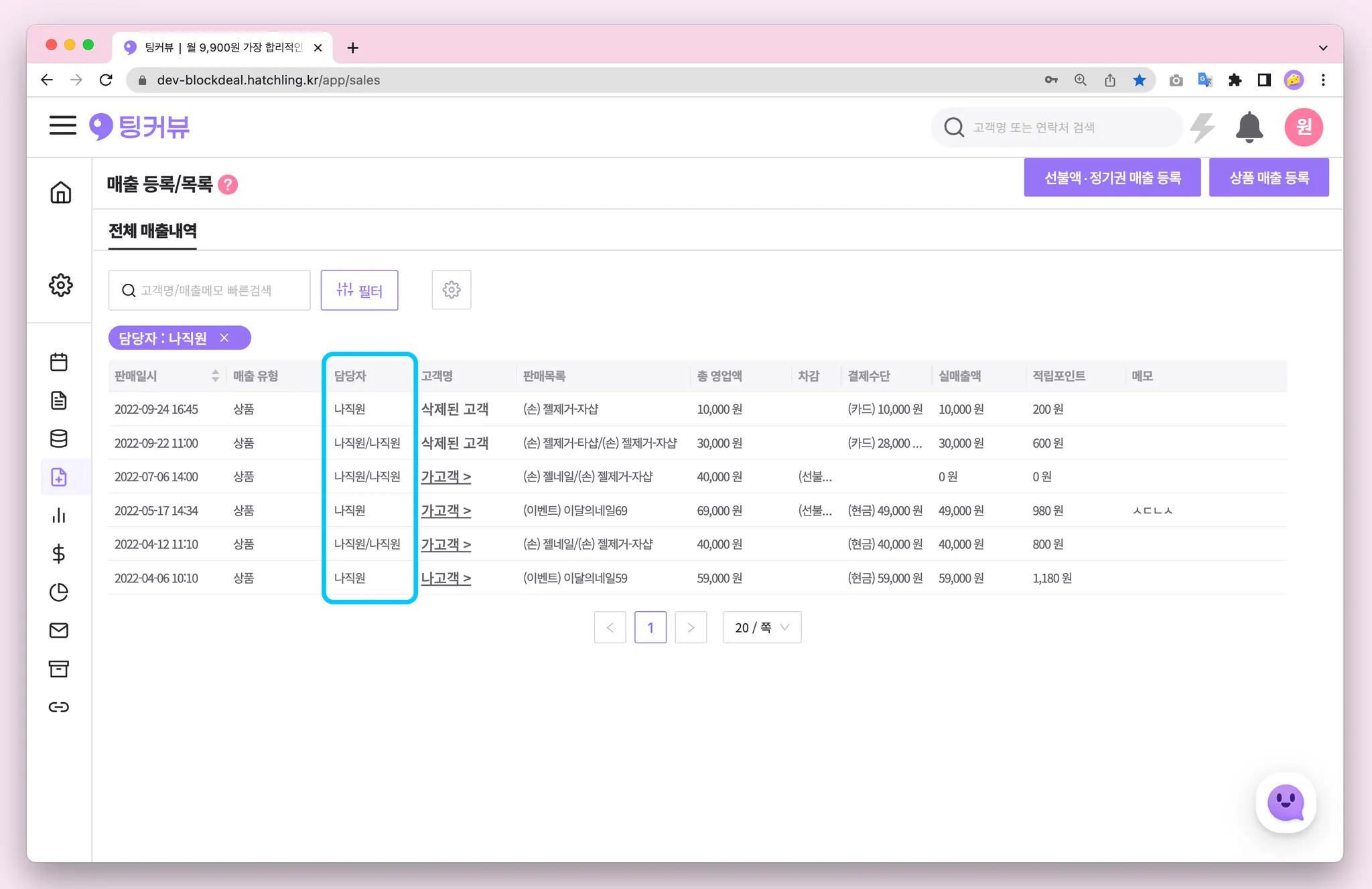 담당자 필터에서 원하는 담당자를 선택하세요.