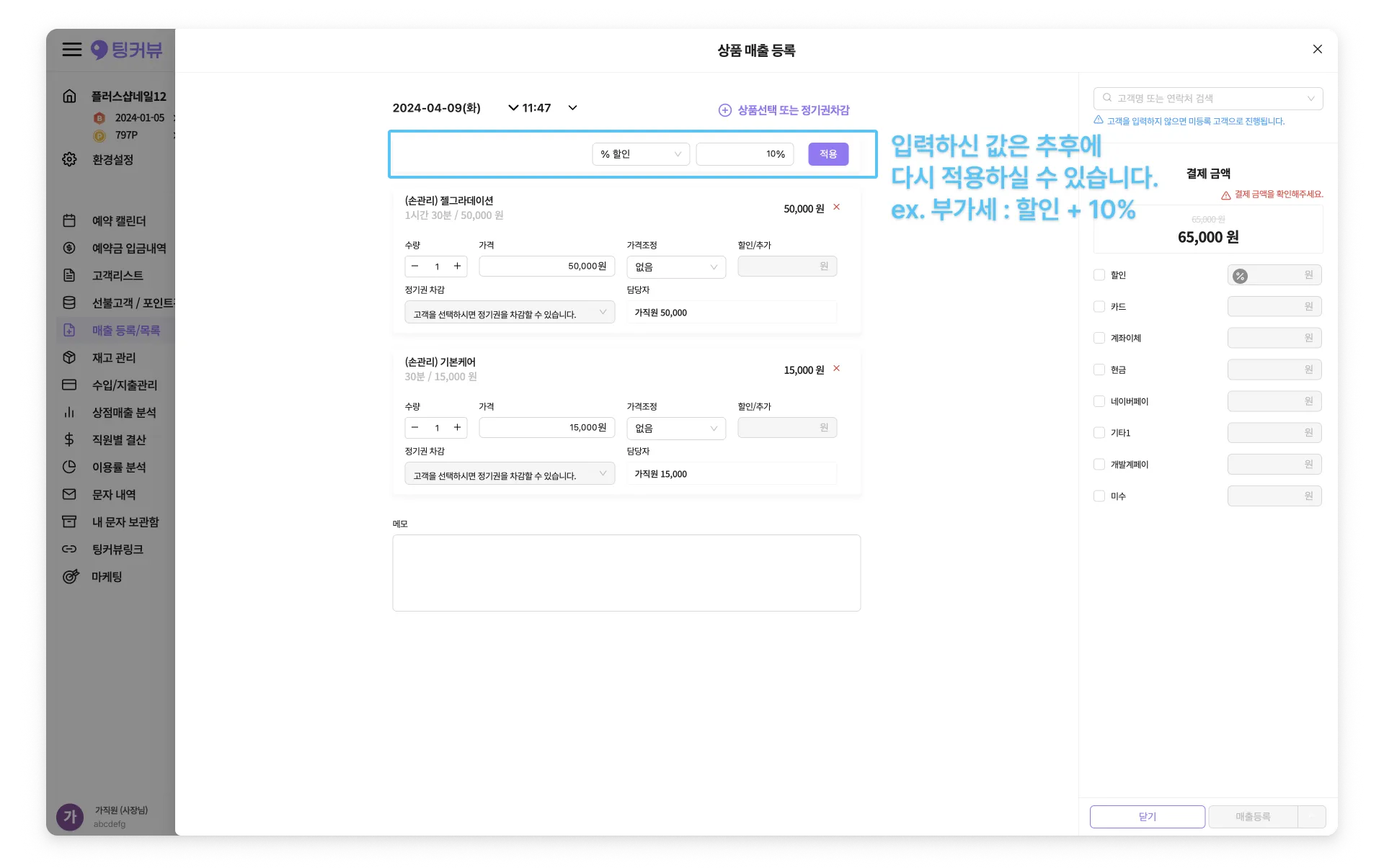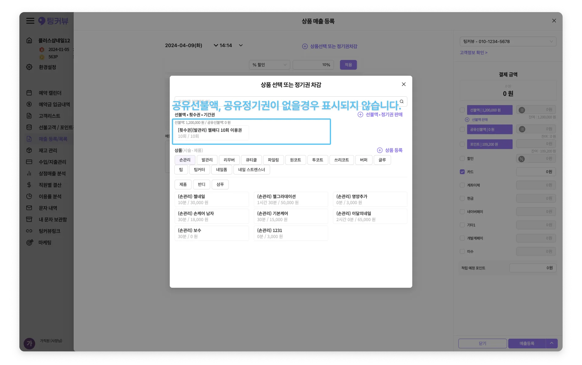 10. 매출등록시 상품 정기권 선택 영역 개선