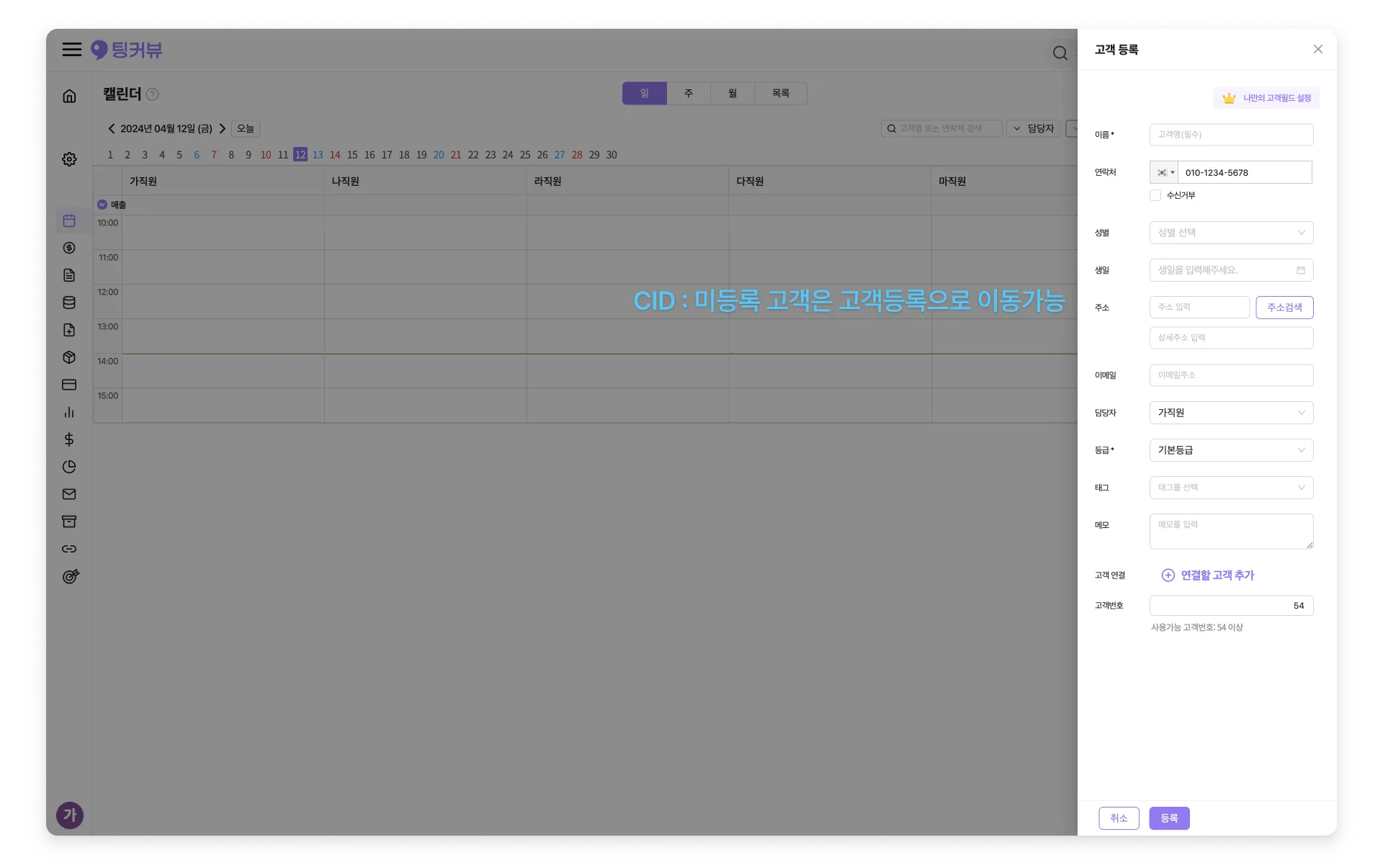 팅커뷰 자체 고객번호가 추가되었습니다. 고객 생성시 고객번호를 입력하시면, 이후 고객 생성부터는 자동으로 고객번호가 기입됩니다.