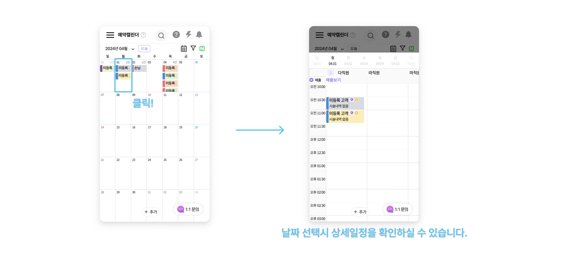 캘린더 보기 양식(일,주,월)을 더 직관적으로 찾아보고 변경하실 수 있습니다.
