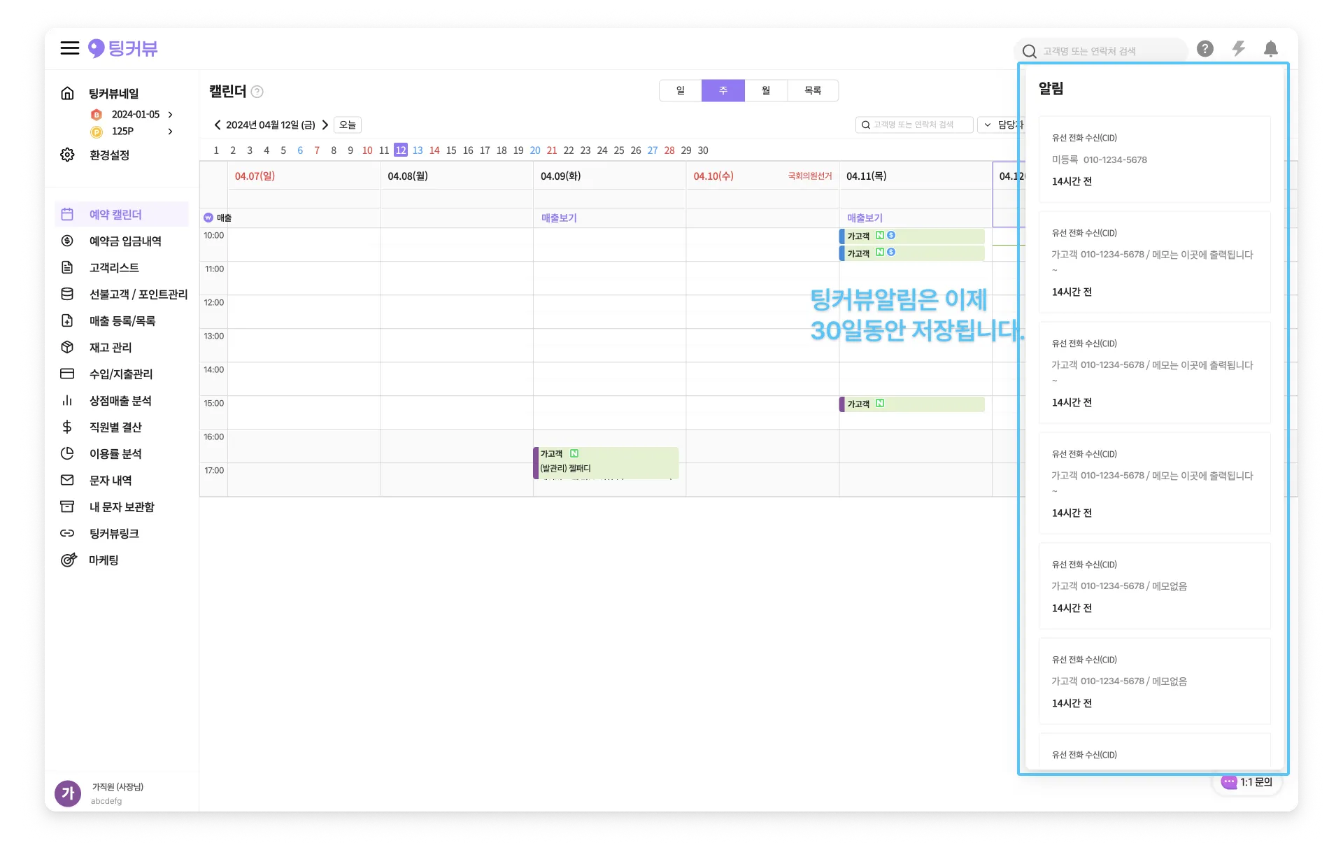 팅커뷰알림이 바로 삭제되어 불편하셨나요? 이제 팅커뷰 알림은 30일동안 사라지지 않고 보관됩니다.