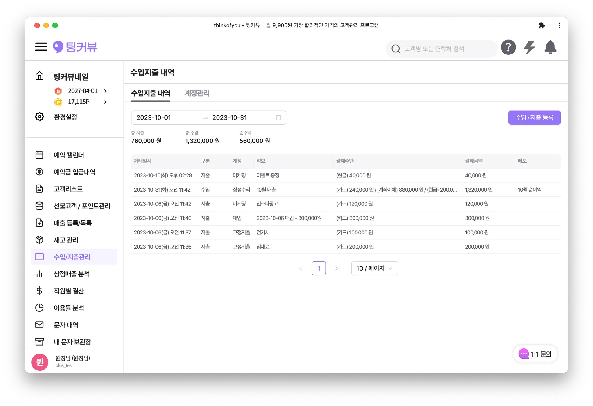 상점 운영에 필요한 수입 지출내역을 등록하고 상점의 순이익을 확인해보세요