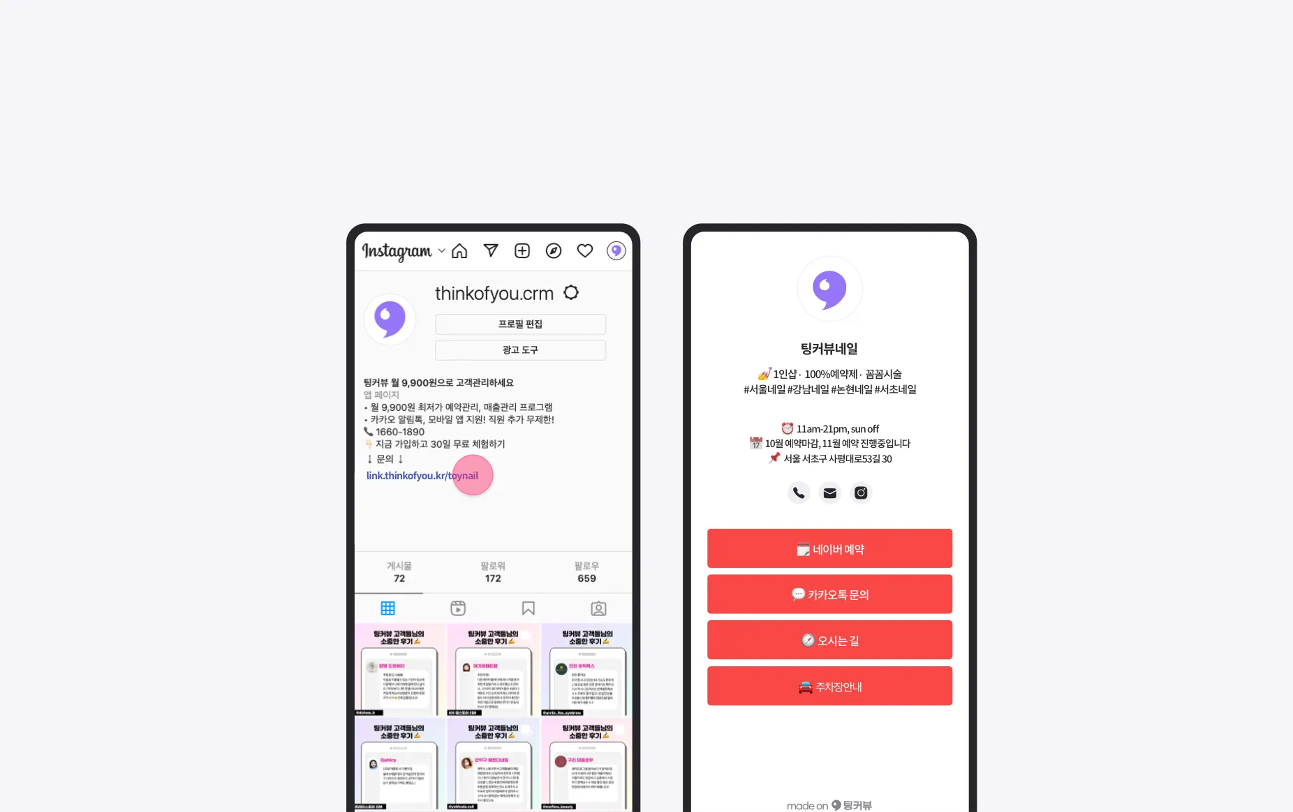 팅커뷰링크란? 상점의 홈페이지를 만들고 관리할 수 있는 기능이에요! 링크페이지에는 상점의 프로필정보, SNS 채널링크, 시술이미지, 이벤트내용 등 다양한 상점정보를 등록하고 관리할 수 있어요!