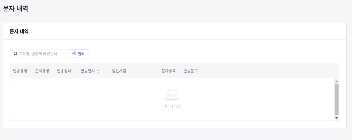 발송된 문자가 잘 갔는지 궁금하다면 문자 내역 메뉴를 클릭해 보세요.