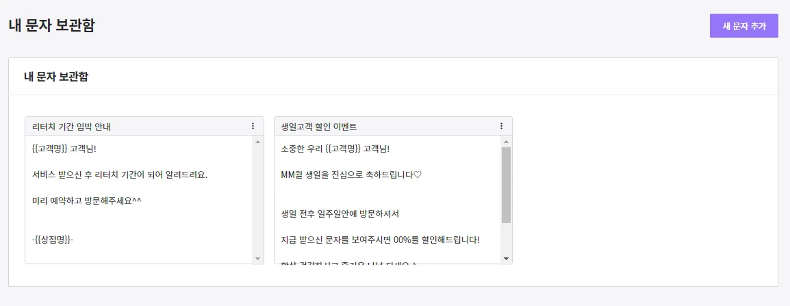 샵을 운영하다 보면 시술받은 고객에게 그 많은 문자를 일일이 신경쓰고 보내기 쉽지 않잖아요.