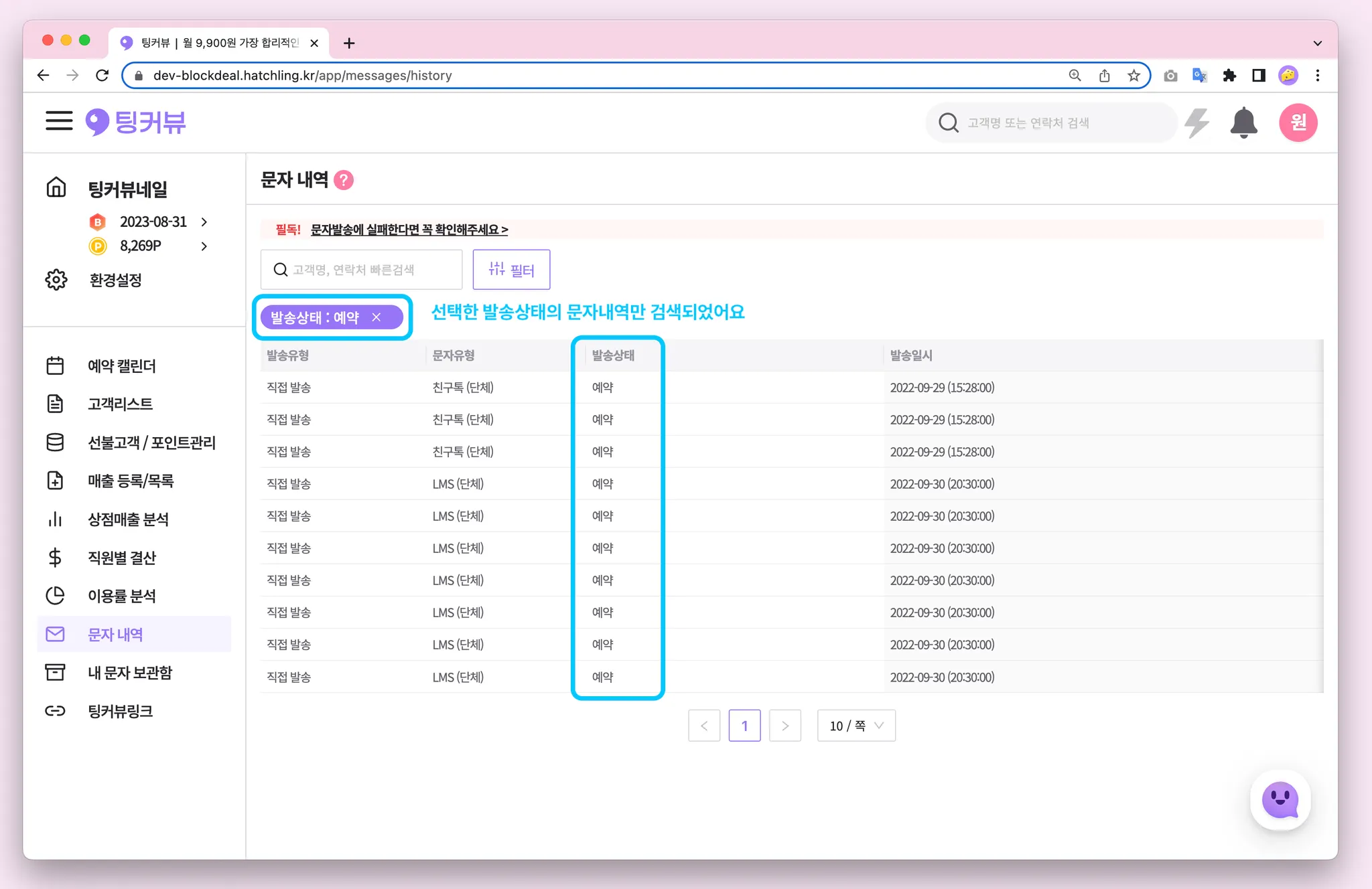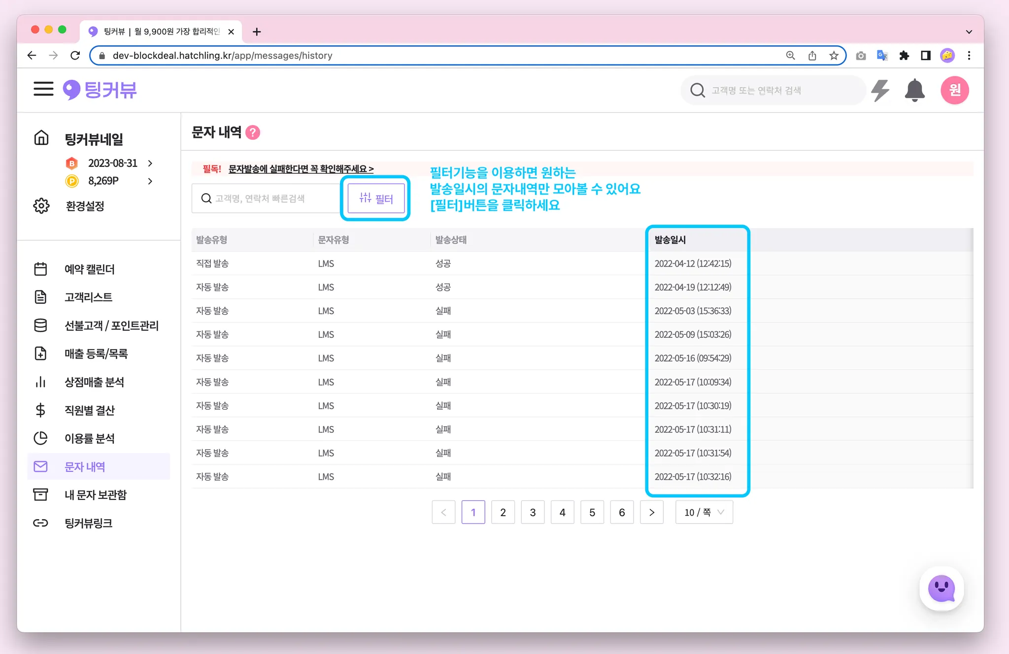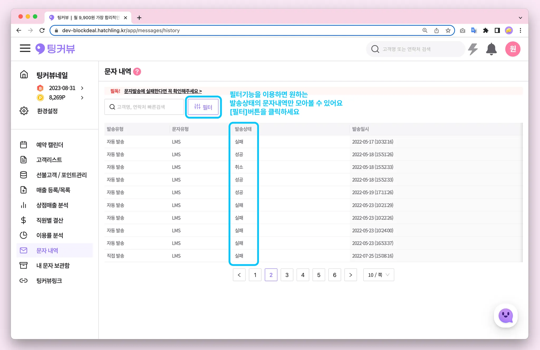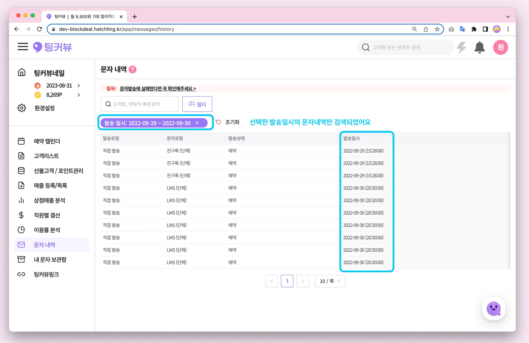 문자 자동발송, 고객리스트에서 직접발송한 문자내역을 한 눈에 확인해보세요!