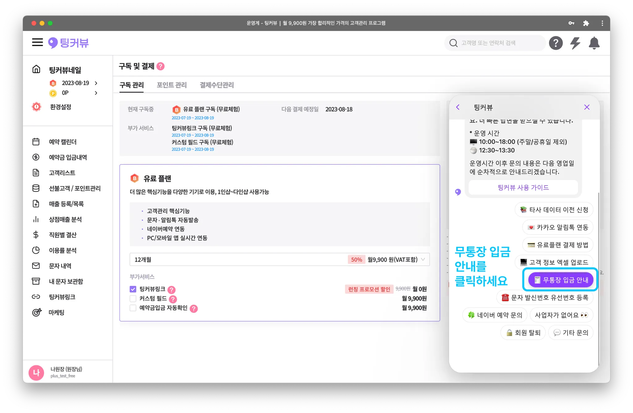 우측 하단의 1:1 문의를 통해 무통장입금을 안내받을 수 있어요!