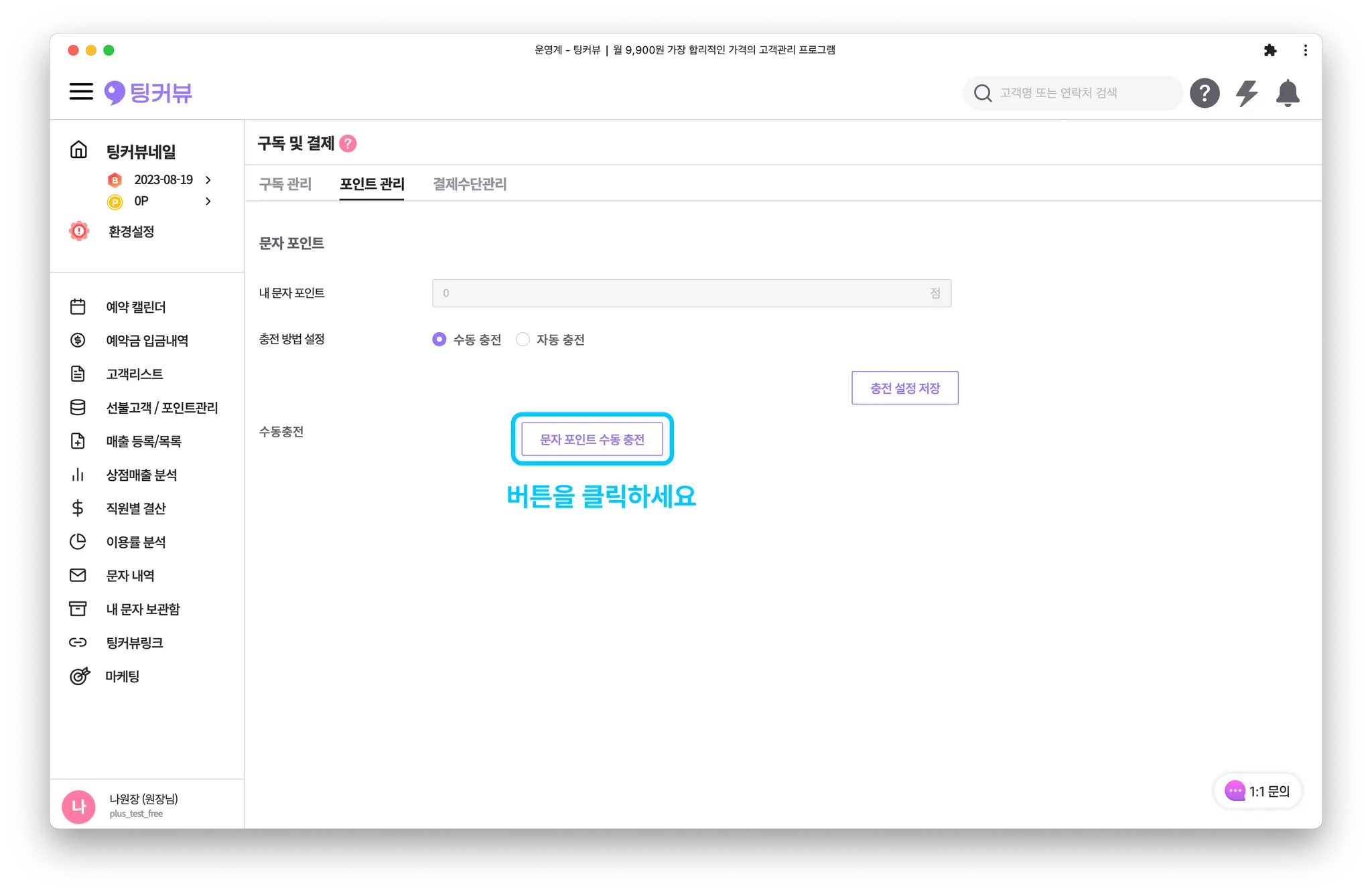 [문자포인트 수동충전] 버튼을 클릭하세요