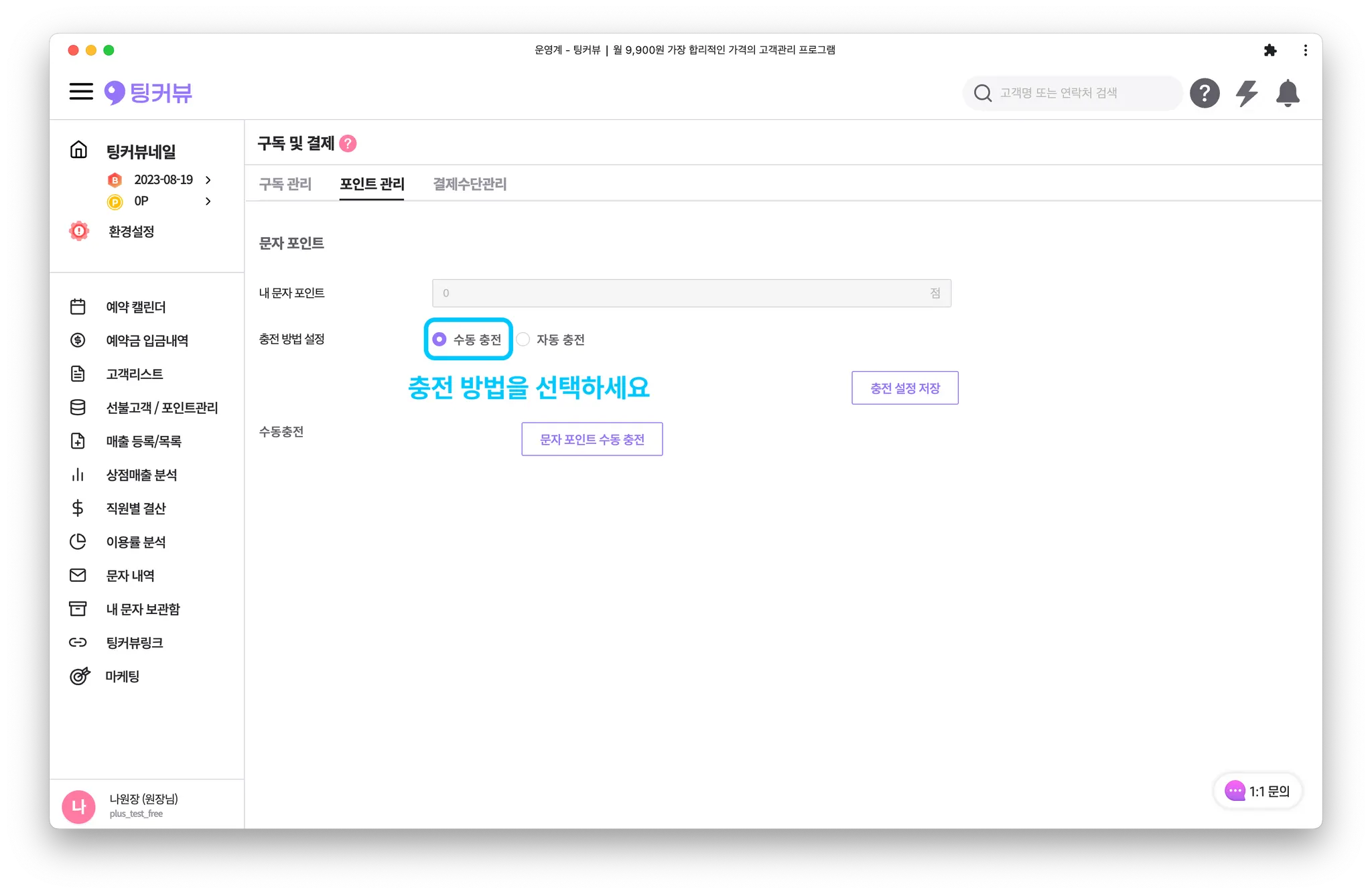 [포인트 관리] 페이지에서 충전방법을 [수동 충전]으로 선택하세요
