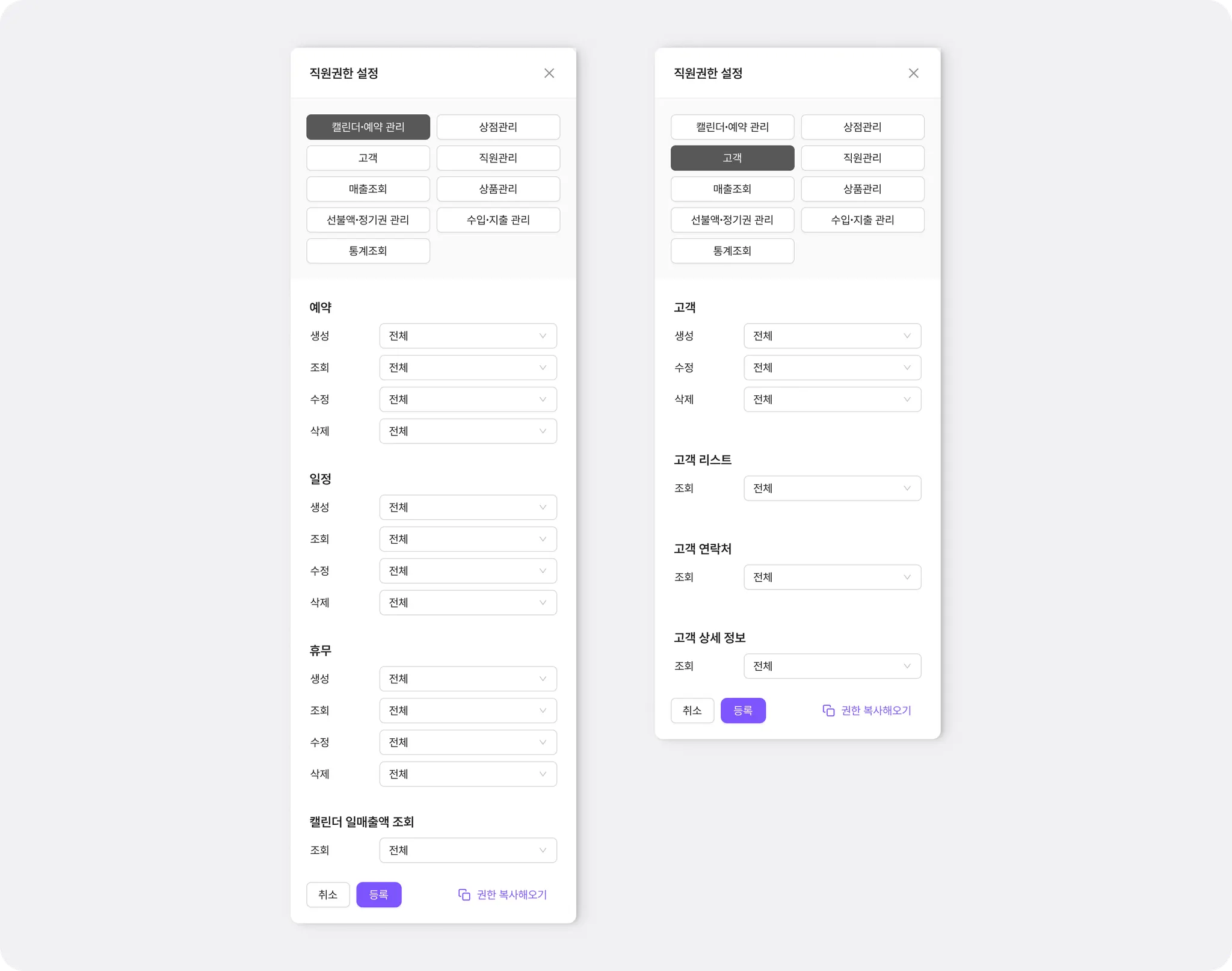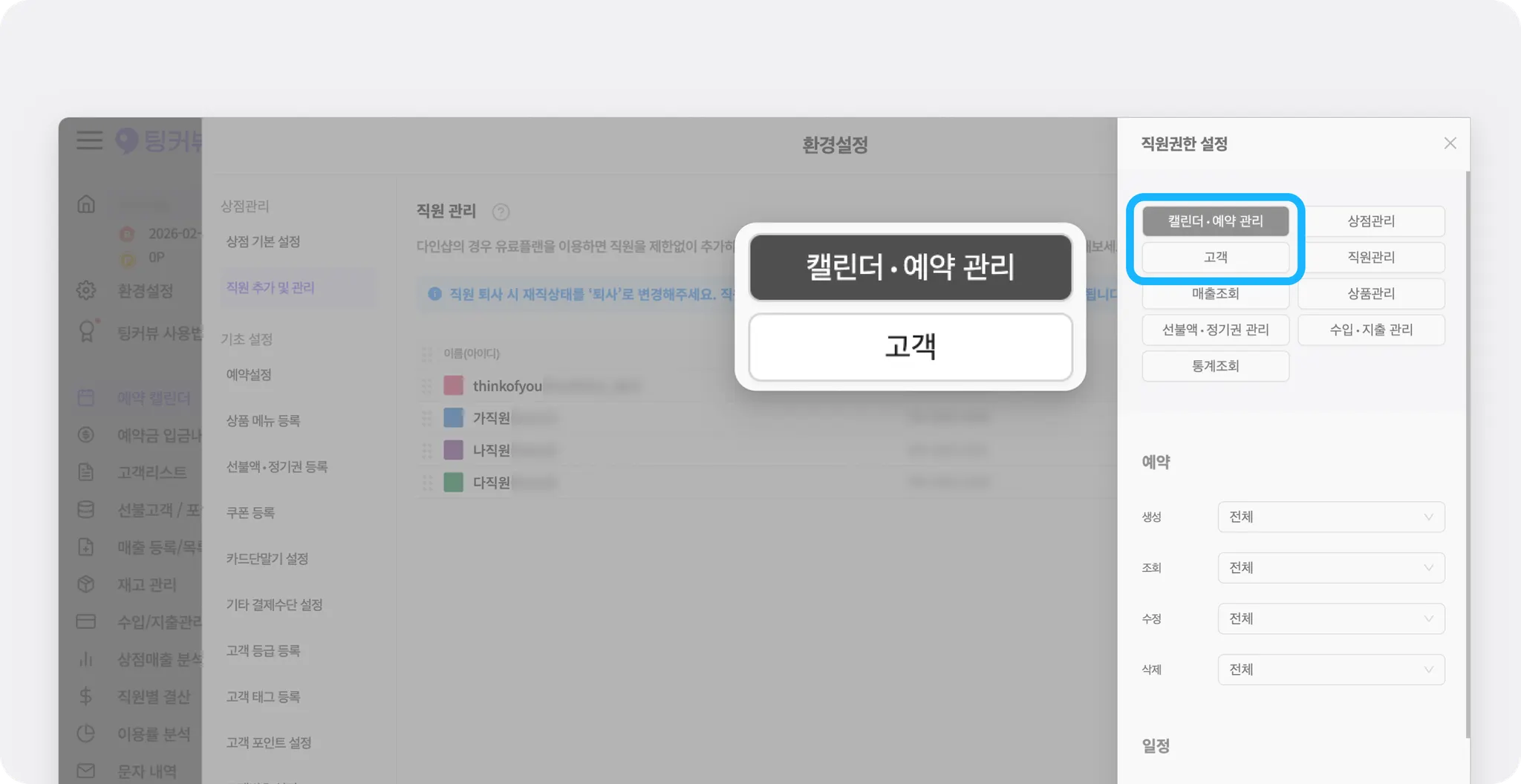 캘린더·예약, 고객 권한을 세분화 했어요.