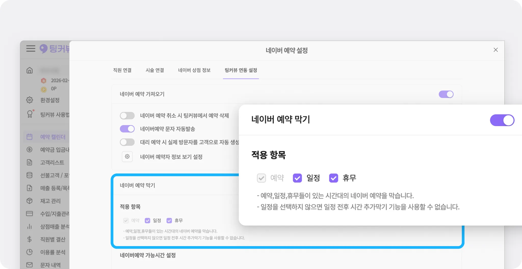 ‘네이버 예약 안막기’ 옵션 추가