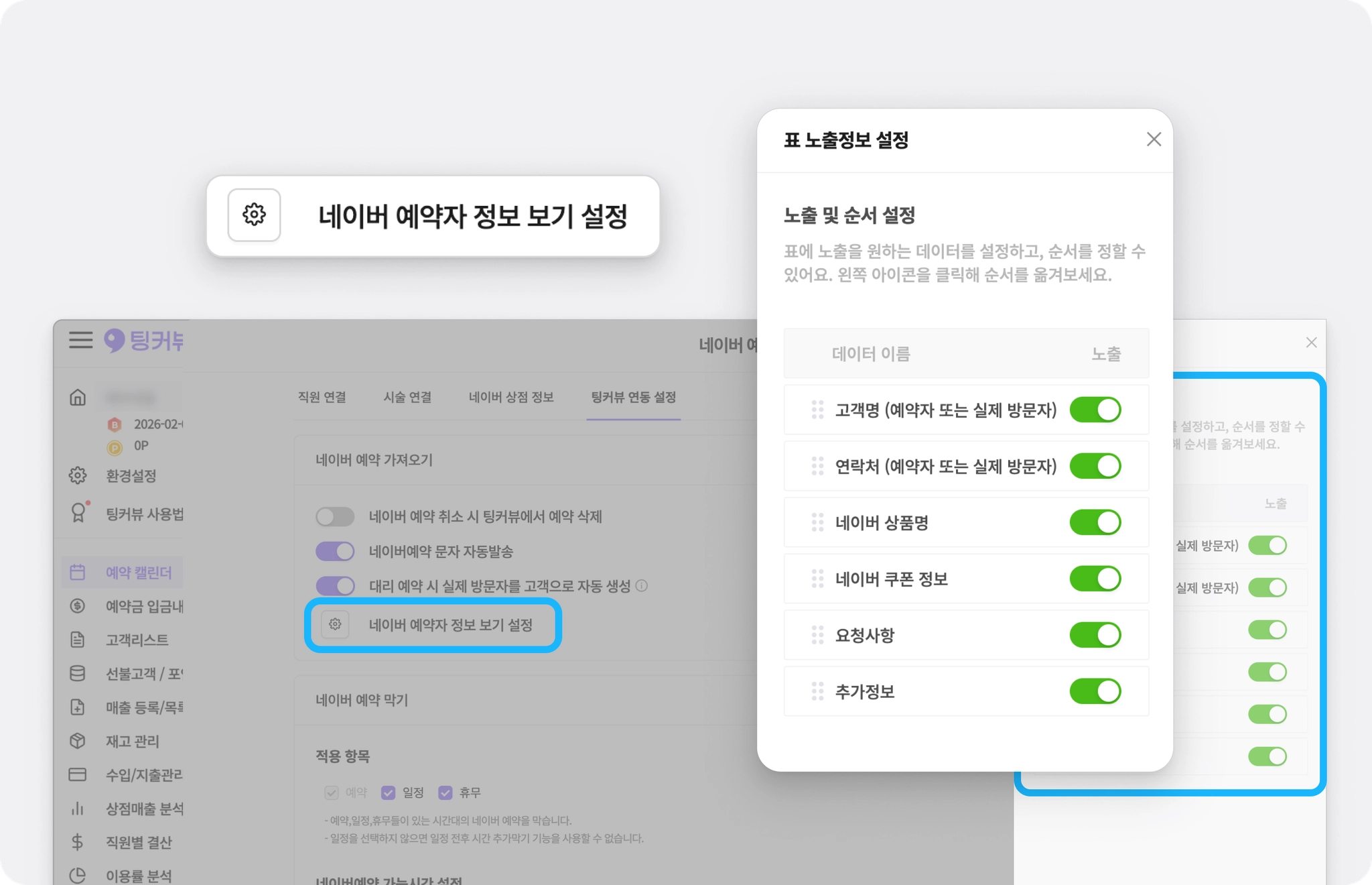 경로: [네이버 예약 설정] - [팅커뷰 연동 설정] - [네이버 예약 가져오기]