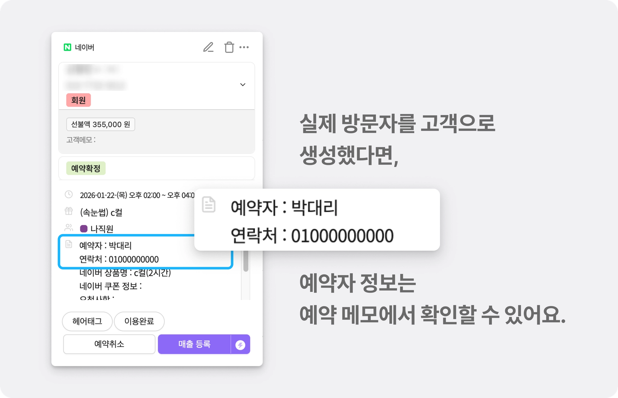 네이버 대리 예약으로 들어온 예약, 이제 실제 방문자를 고객으로 등록할 수 있어요!
