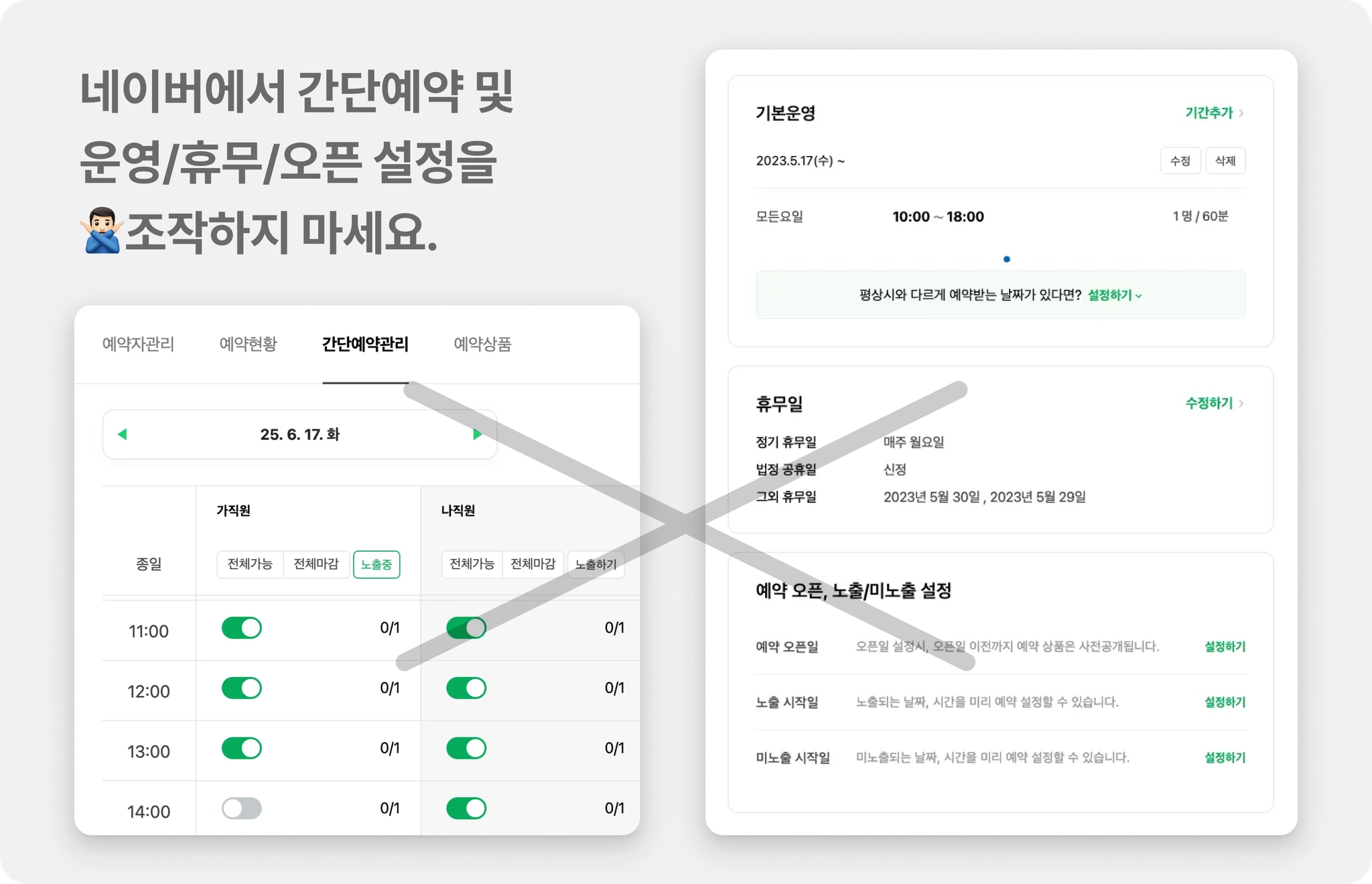 네이버 스마트플레이스에서 직접 시간을 수정하거나 차단하지 말아주세요.