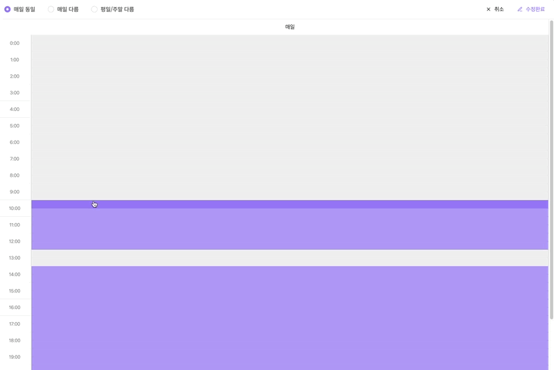 드래그앤드롭으로 편리하게 운영 시간을 설정해 보세요!