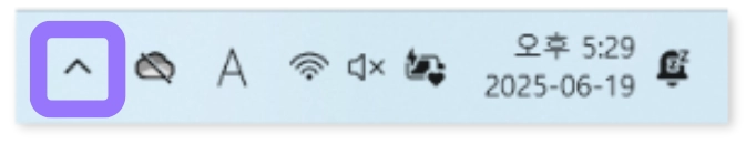 작업표시줄 우측 숨겨진 아이콘 표시 버튼(︿)을 눌러주세요.