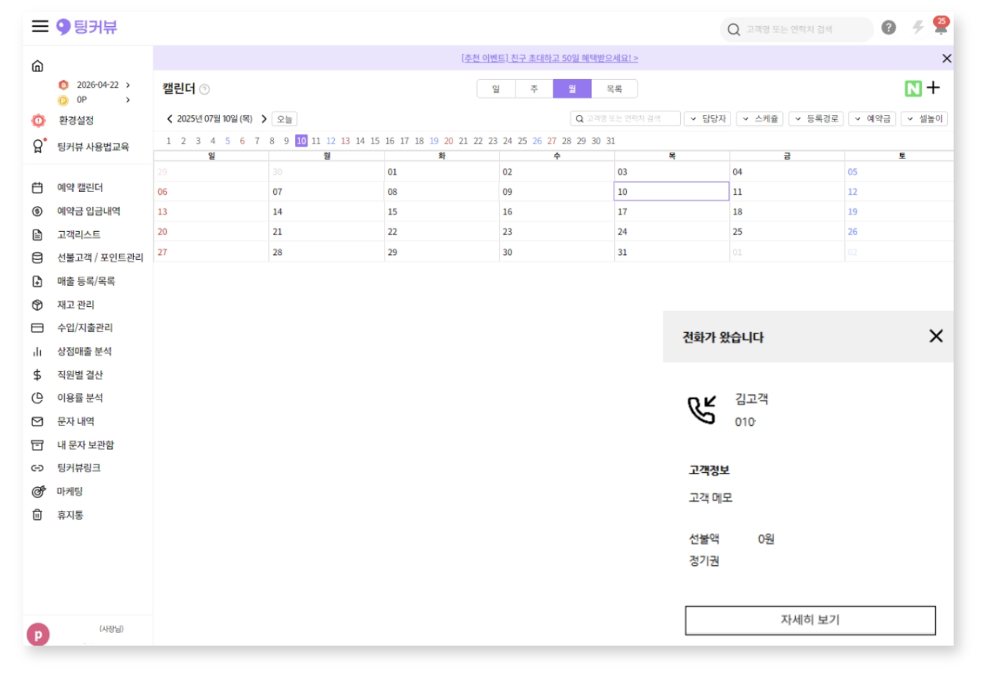 기존 고객일 경우 ‘자세히 보기’를 눌러 고객 상세 정보 페이지로 이동할 수 있습니다.
