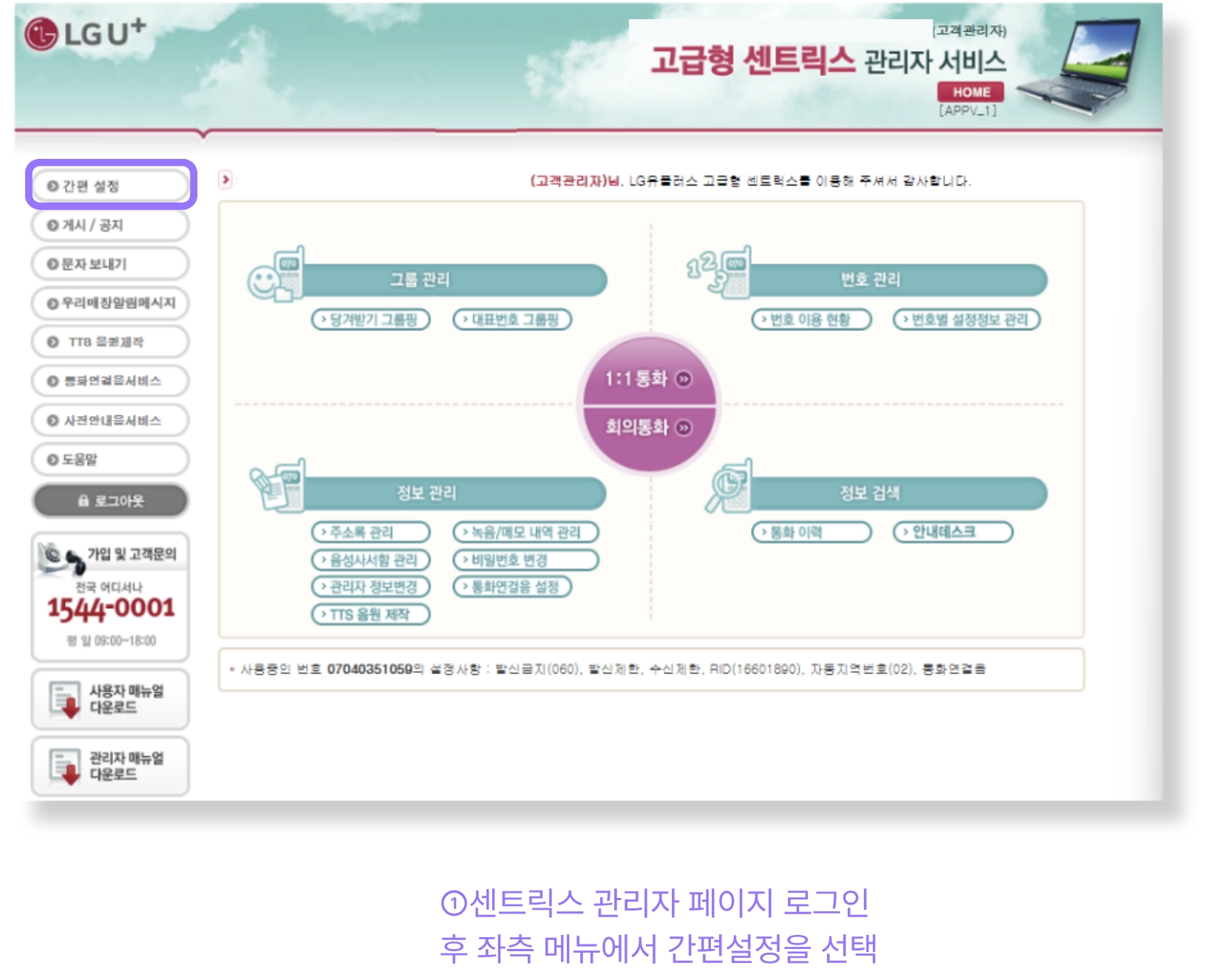 LGU+ 인터넷전화 로그인창 좌측 하단 관리자 페이지를 눌러주세요.