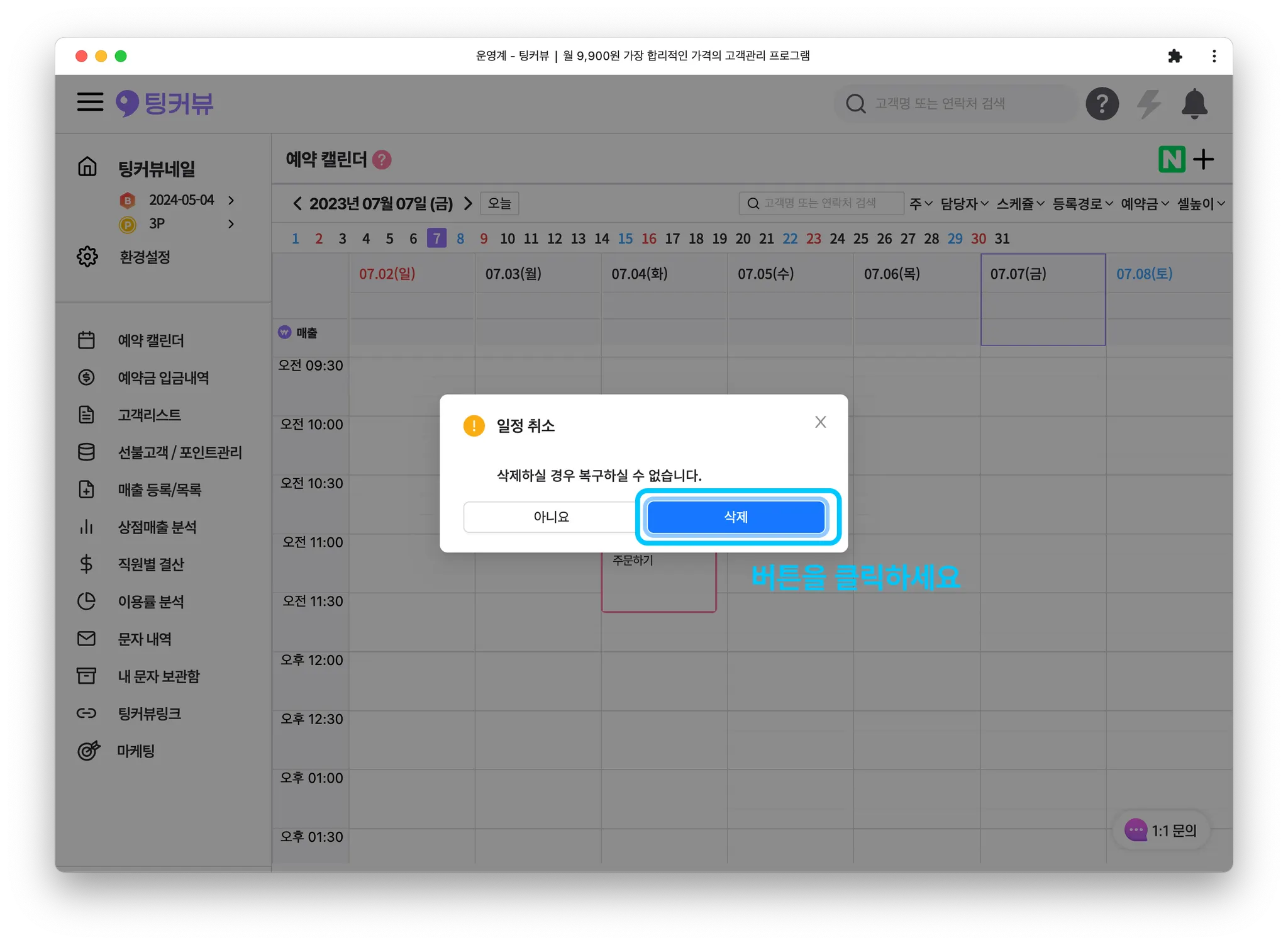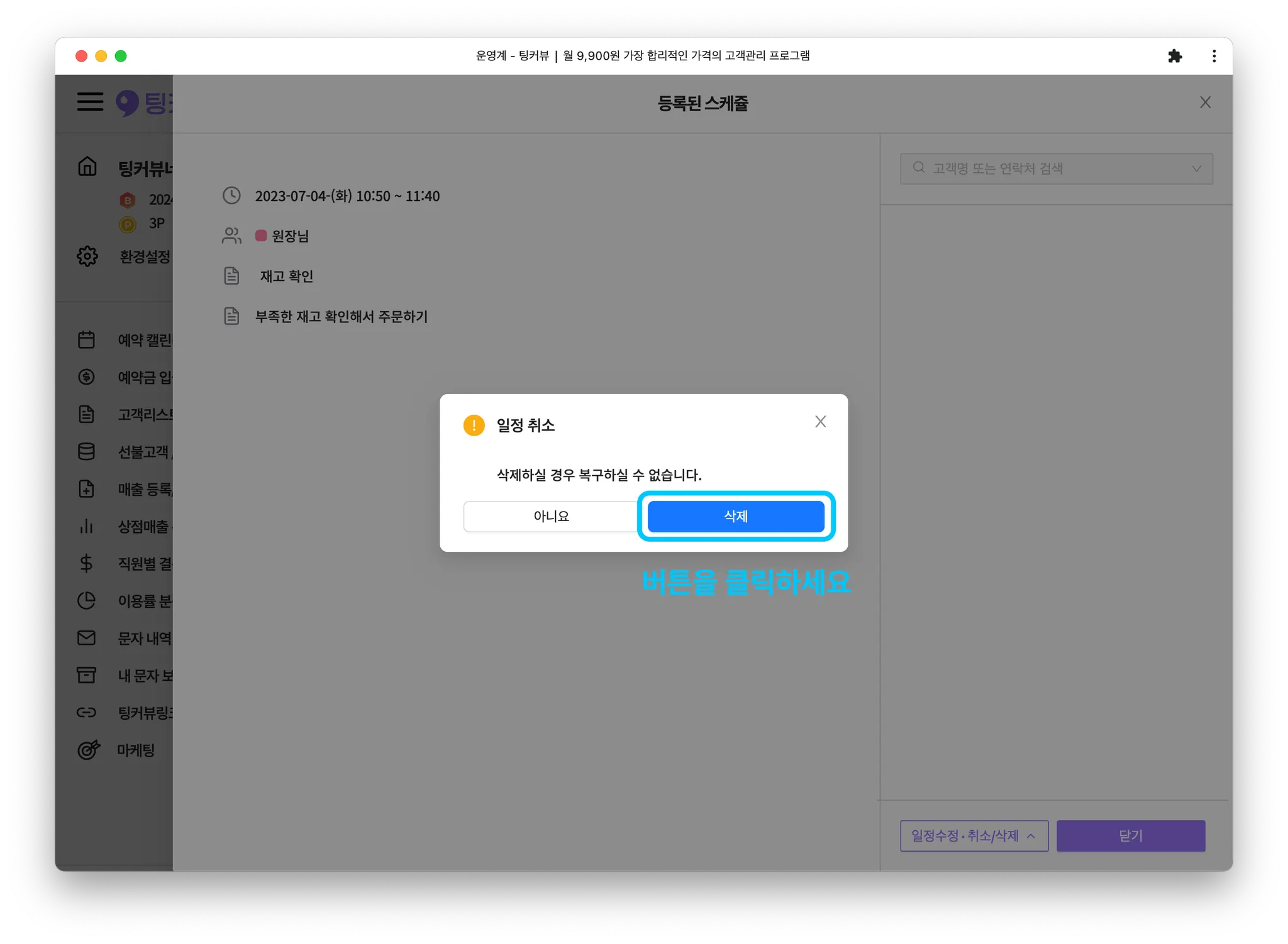 2-2. 일정블록을 클릭해 일정 삭제하기