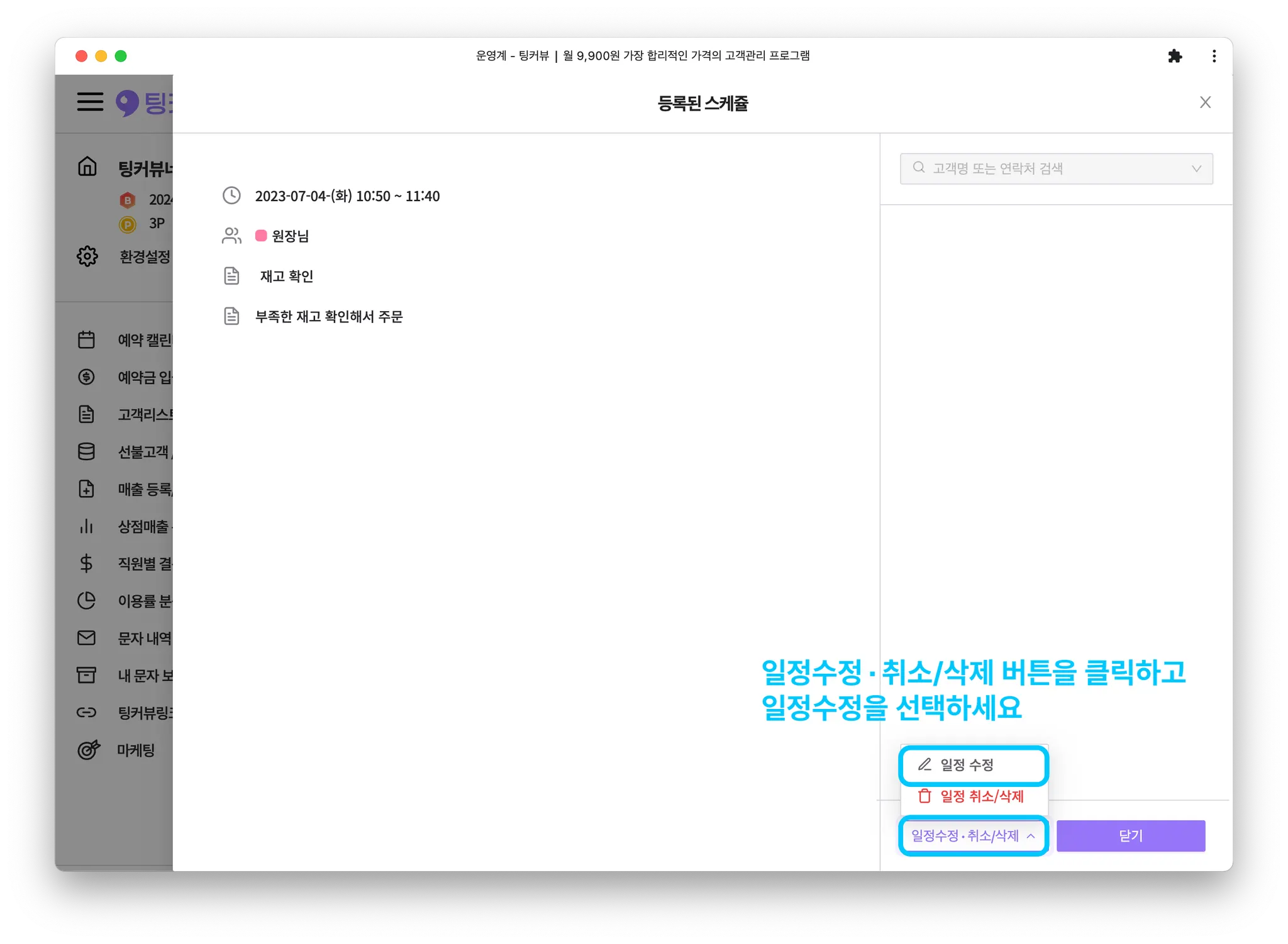 1-1. 일정툴팁에서 일정수정하기