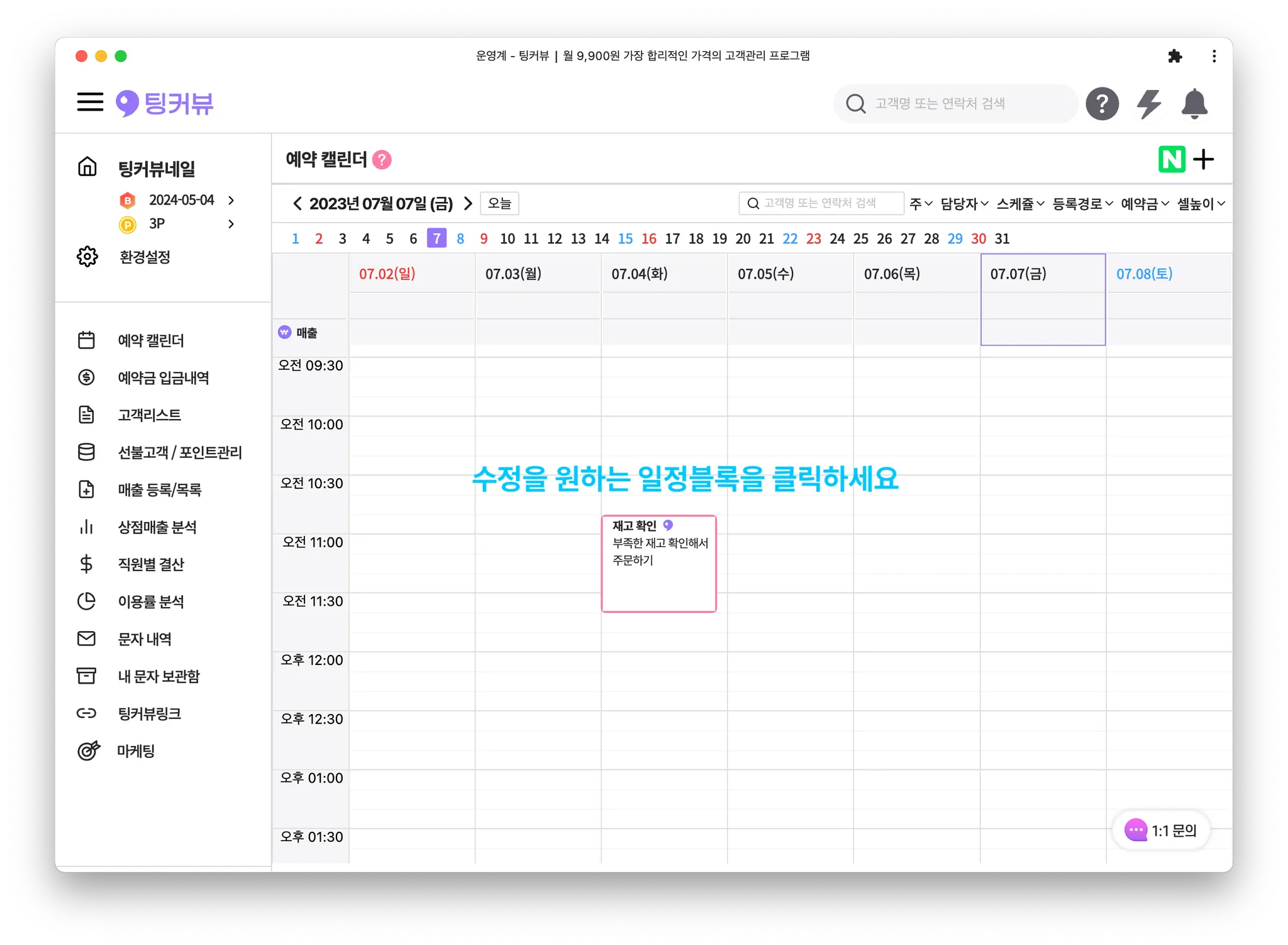 1-2. 일정블록을 클릭해 일정 수정하기
