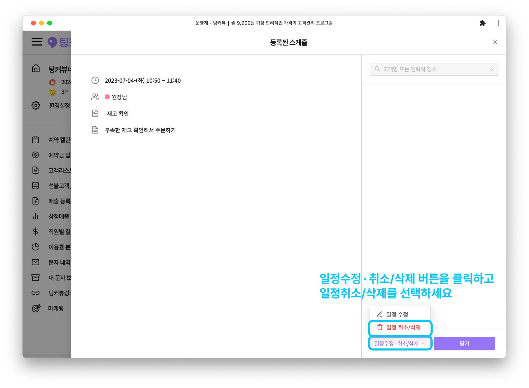 2-1. 일정툴팁에서 일정삭제하기