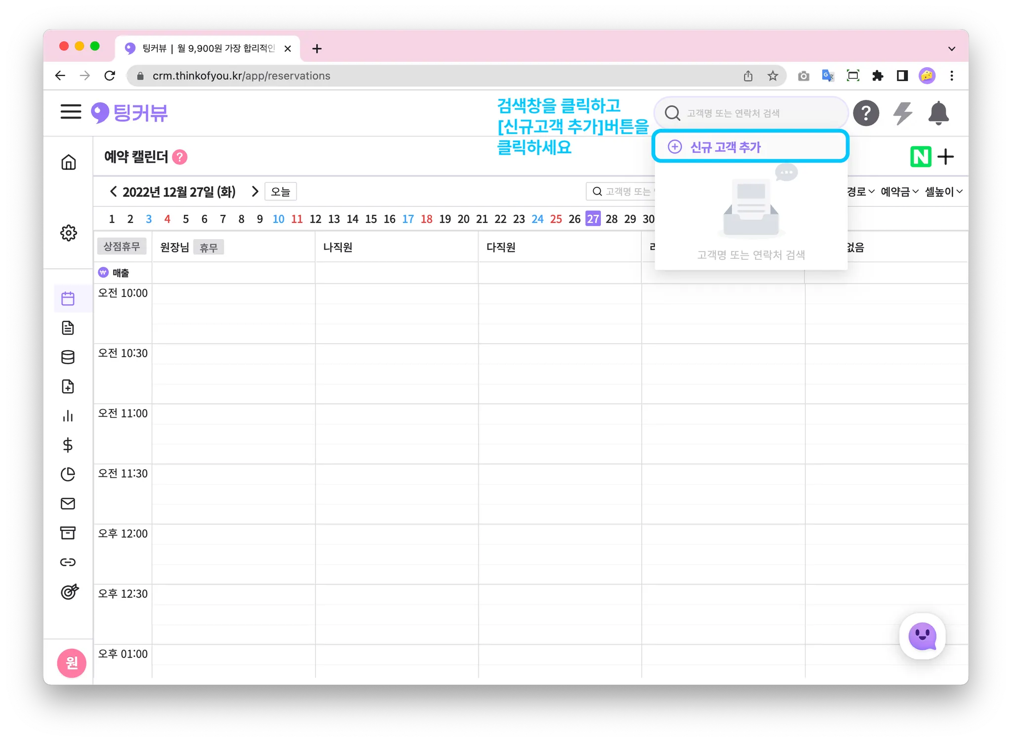 검색창 을 클릭해 + 신규고객 추가 버튼을 클릭해주세요.
