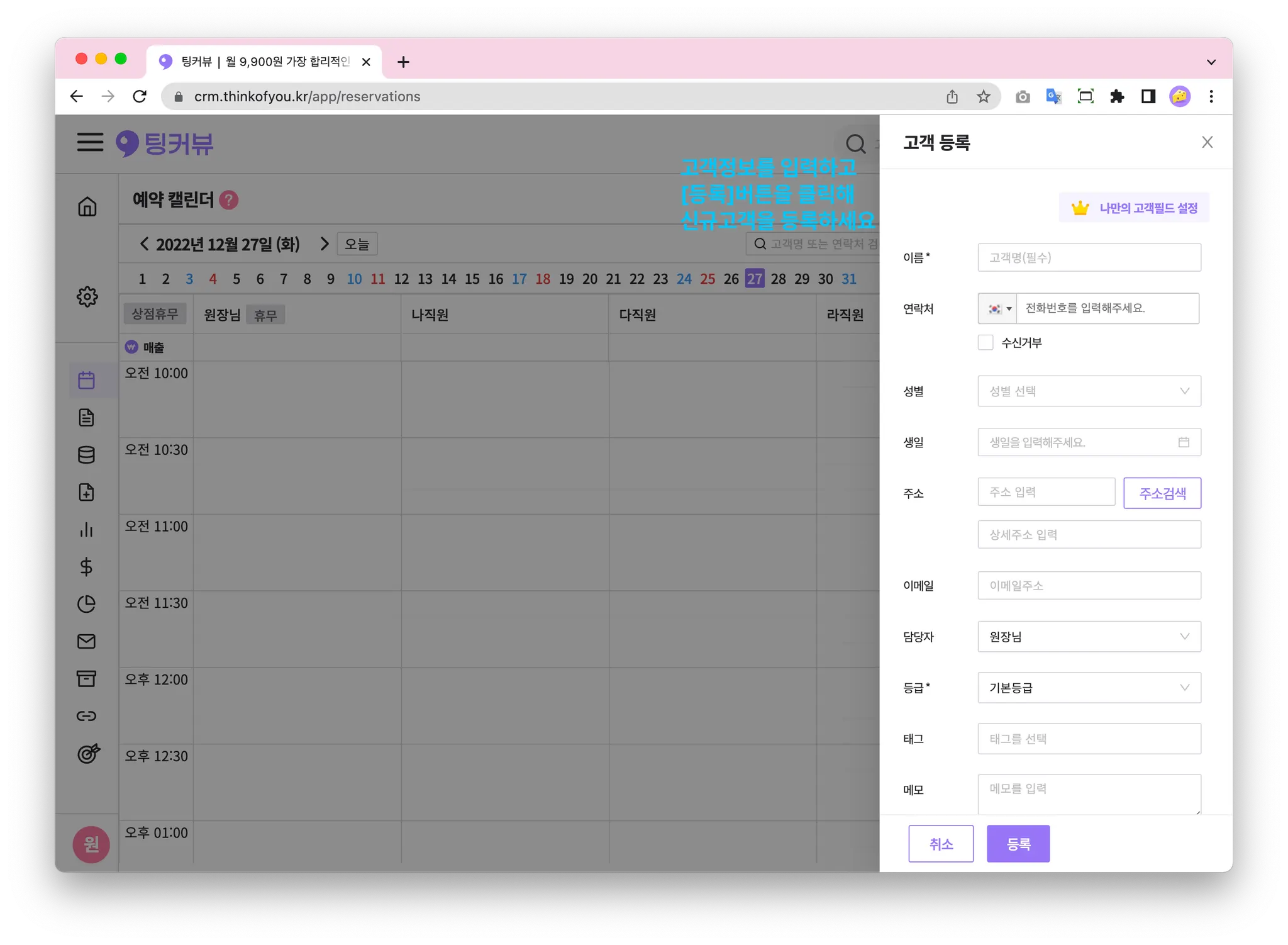 고객등록 창이 열리면 추가할 신규고객의 정보를 입력해주세요.