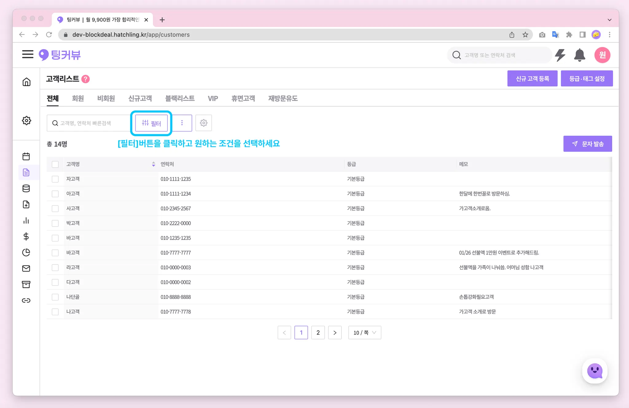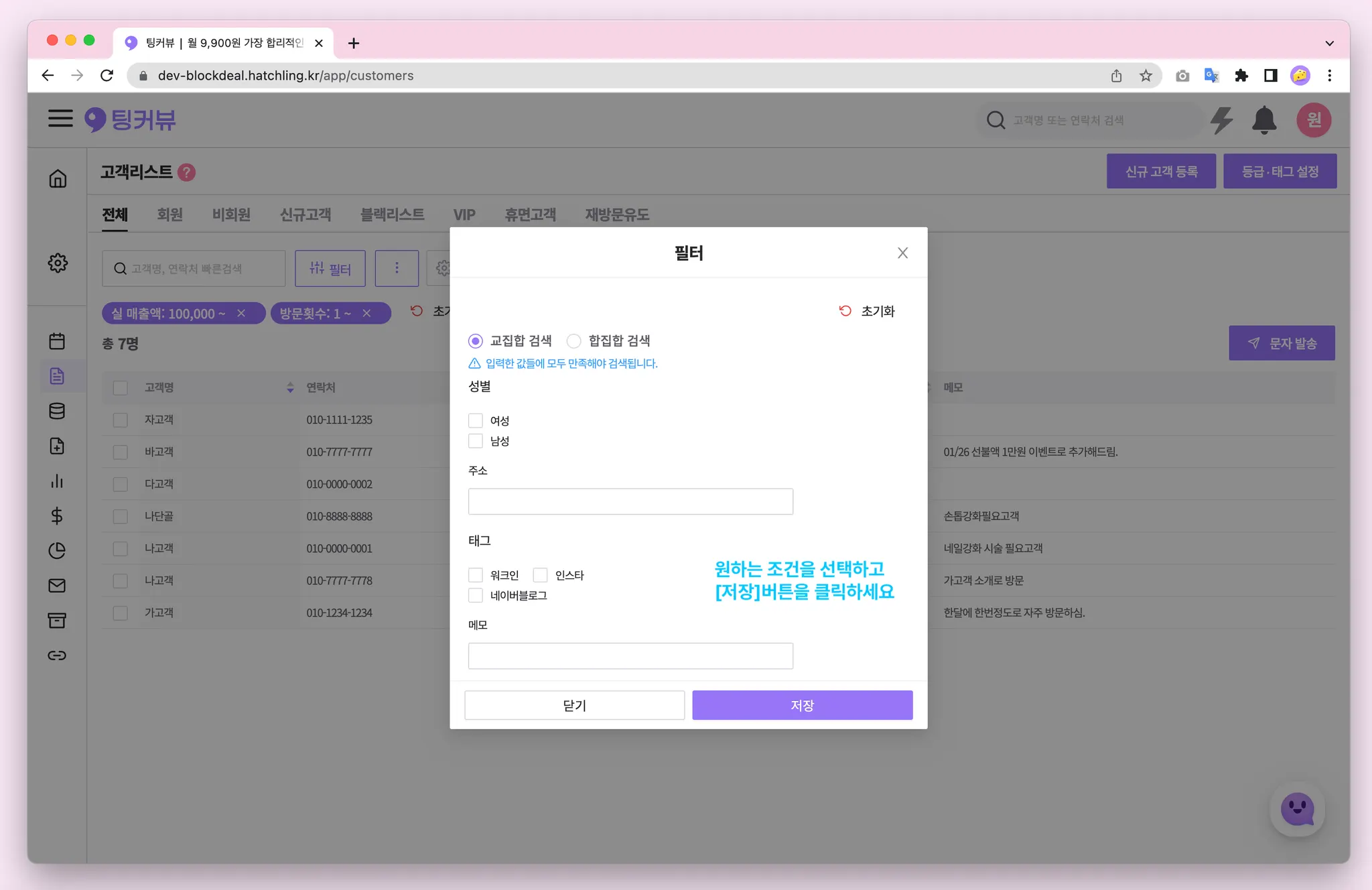 고객필터를 이용해 원하는 고객을 검색하고 모아보세요!