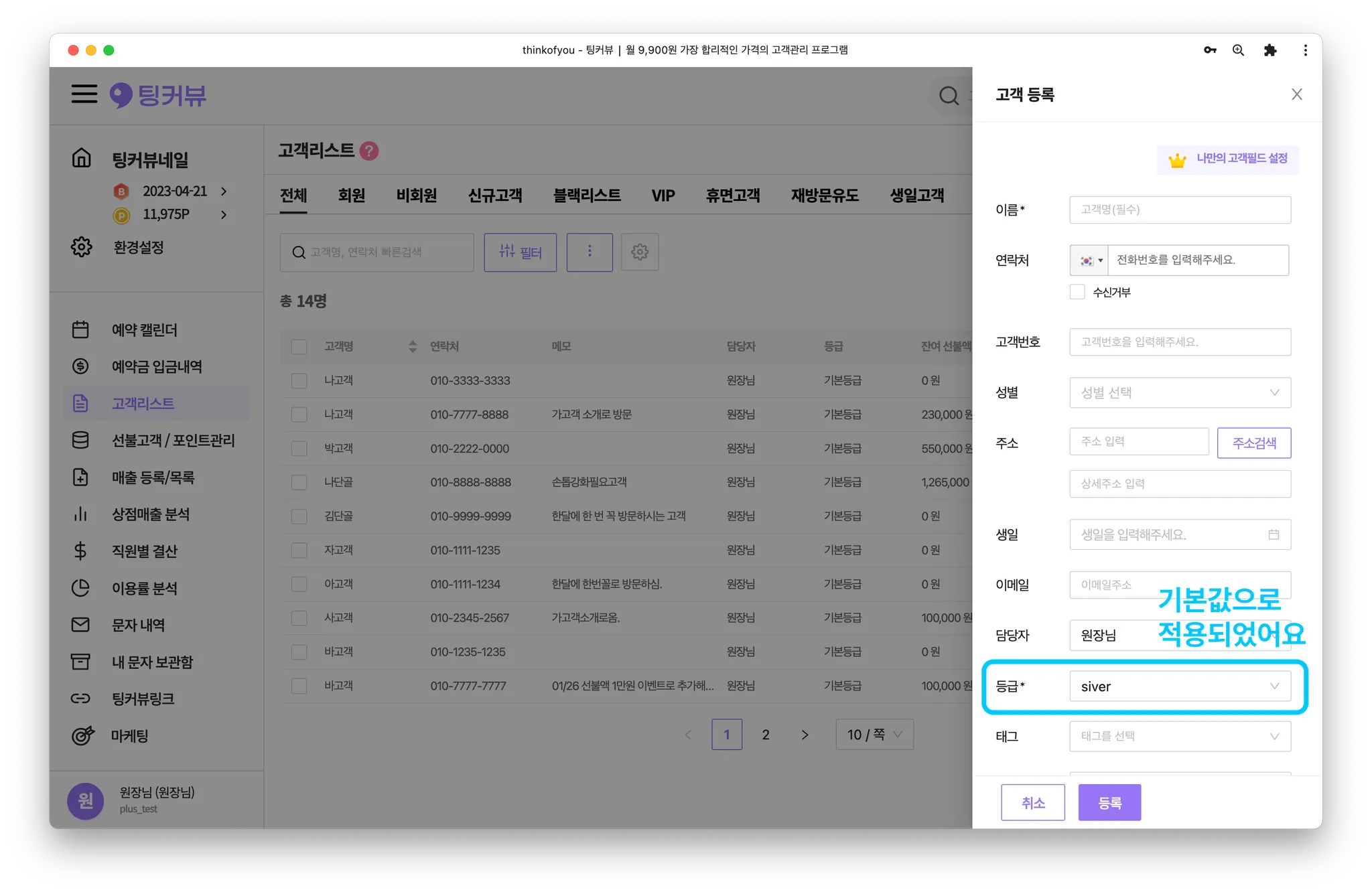 2. 새 고객등급 등록하기