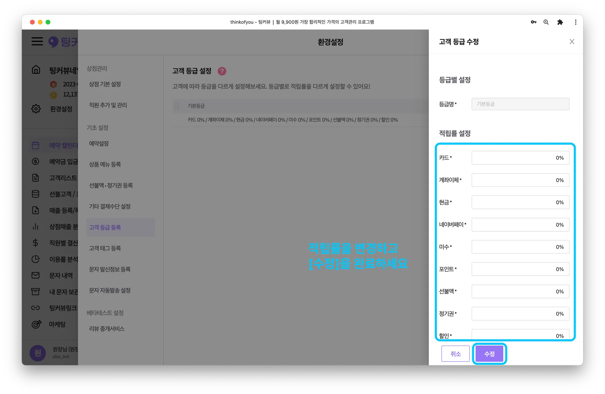 포인트 적립률 설정을 변경한 후 [수정] 버튼을 클릭해주세요.