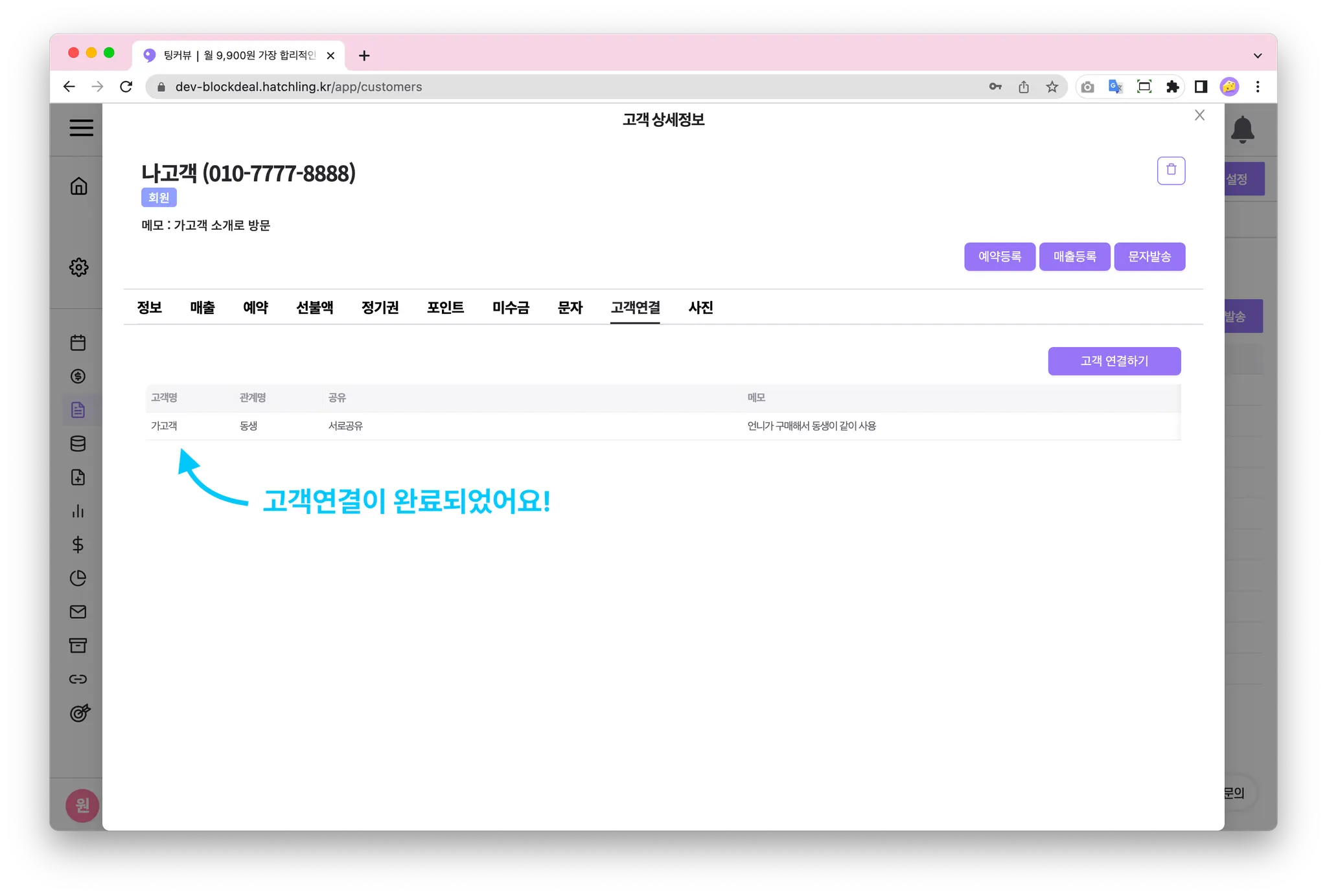 연결된 고객이 추가된 것을 확인할 수 있어요!