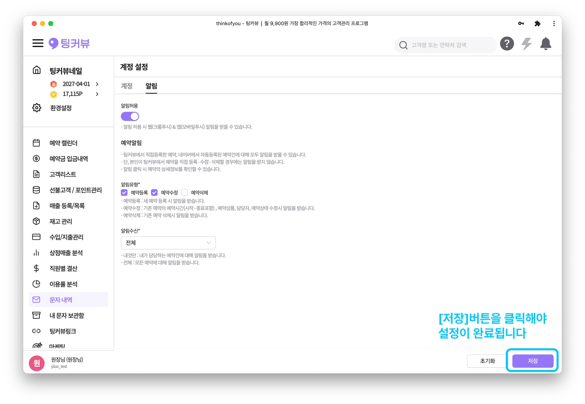 [저장]버튼을 클릭해 이용설정을 완료해주세요!