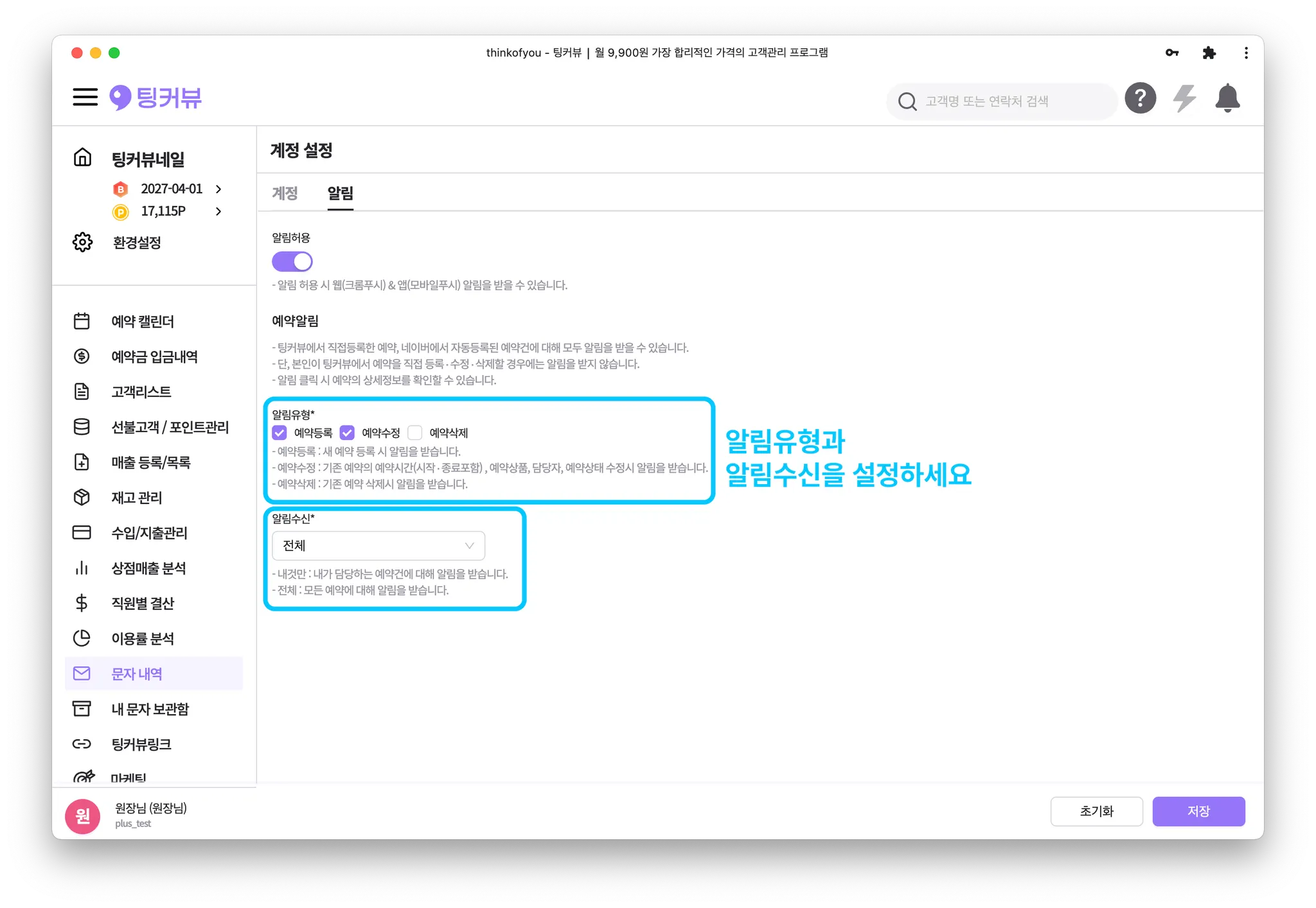 알림유형과 알림수신을 설정해주세요!