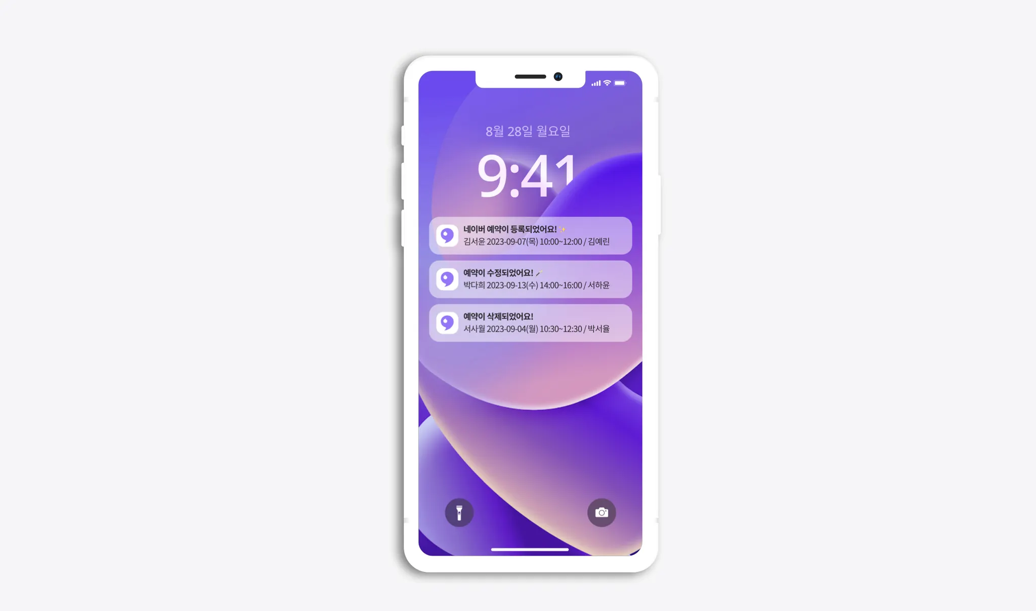 앱을 켜지 않아도 예약 상황을 바로바로 확인할 수 있도록 푸시알림을 보내드려요