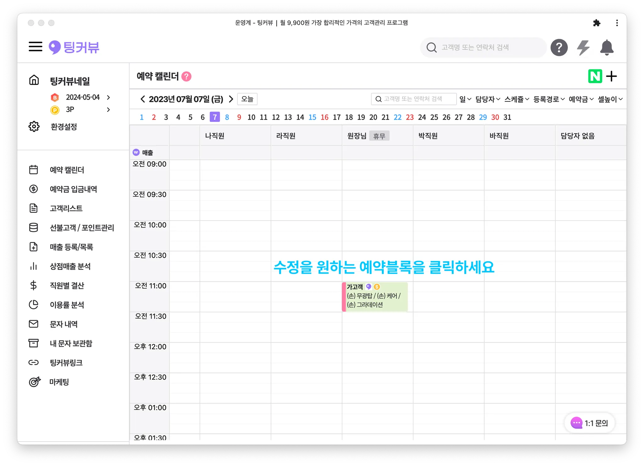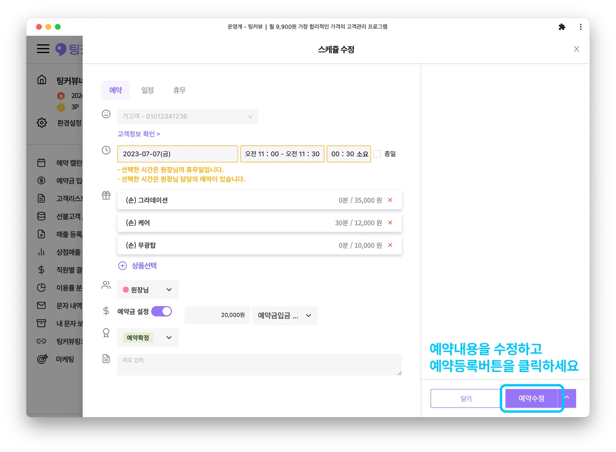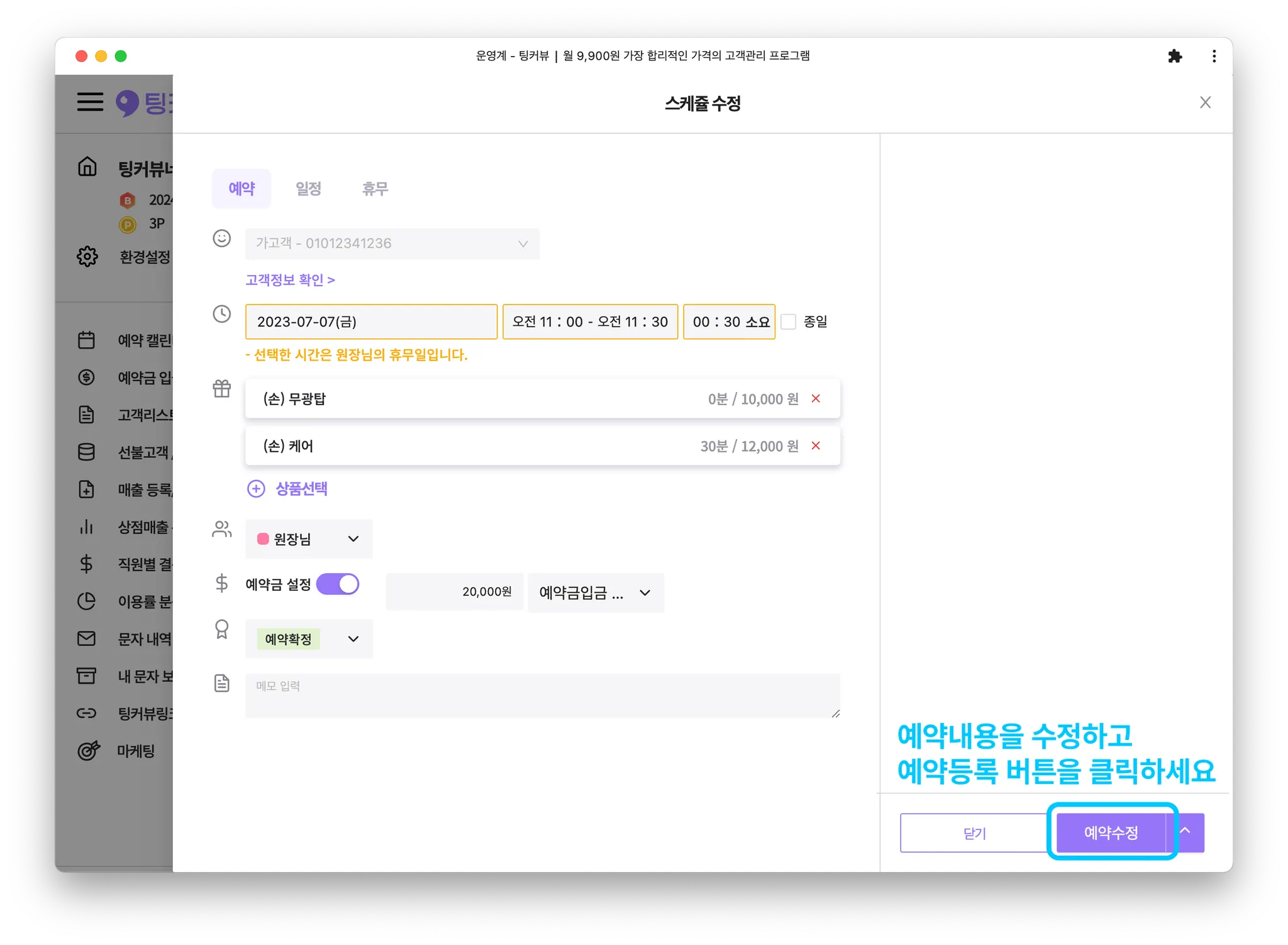 1-2. 예약블록을 클릭해 예약 수정하기