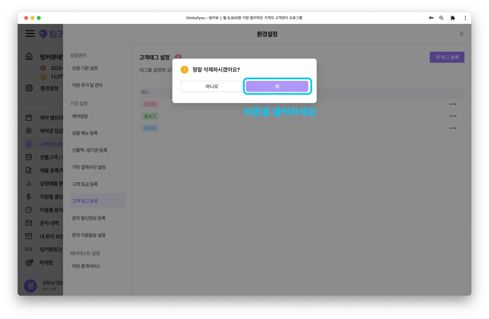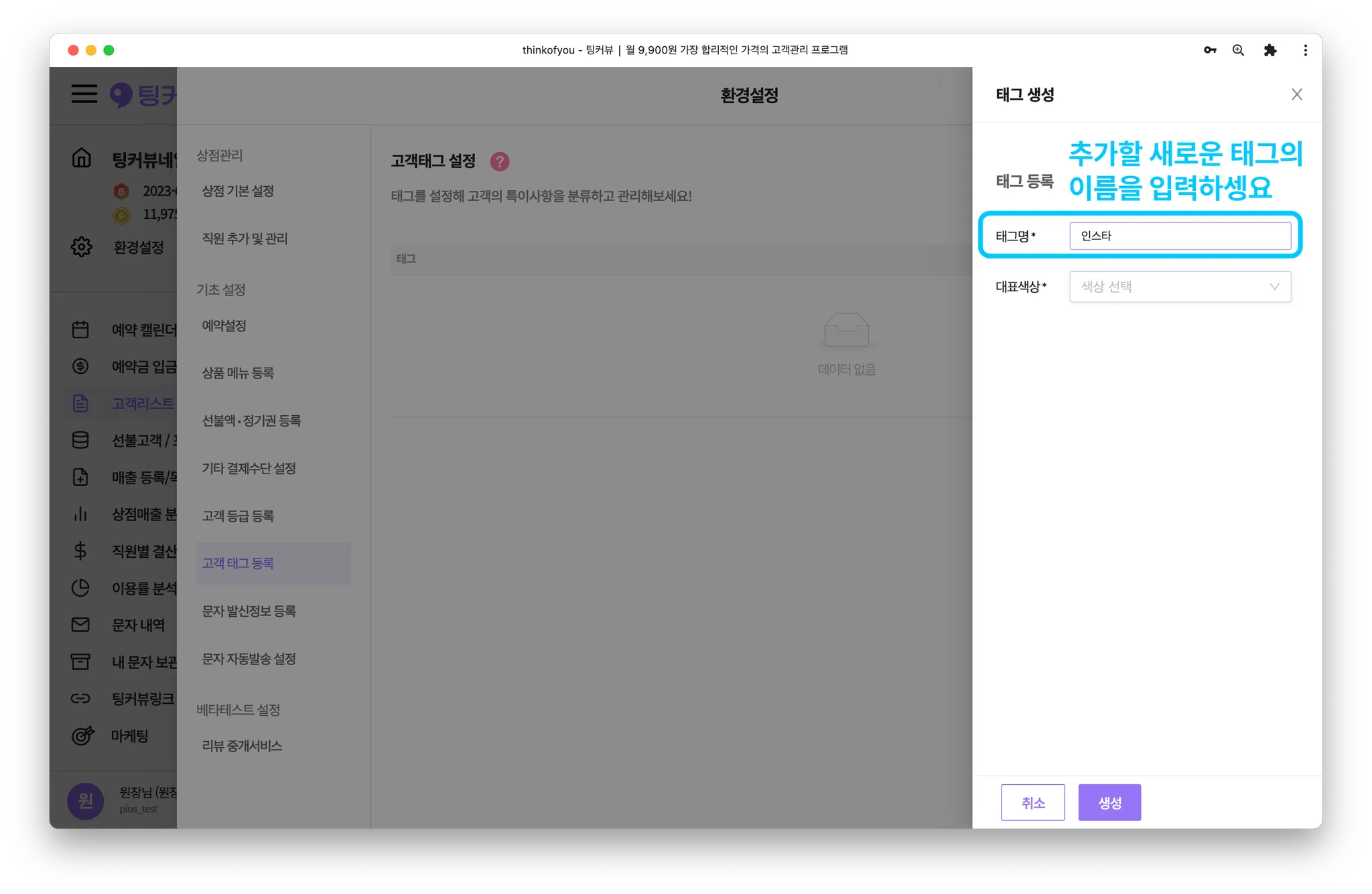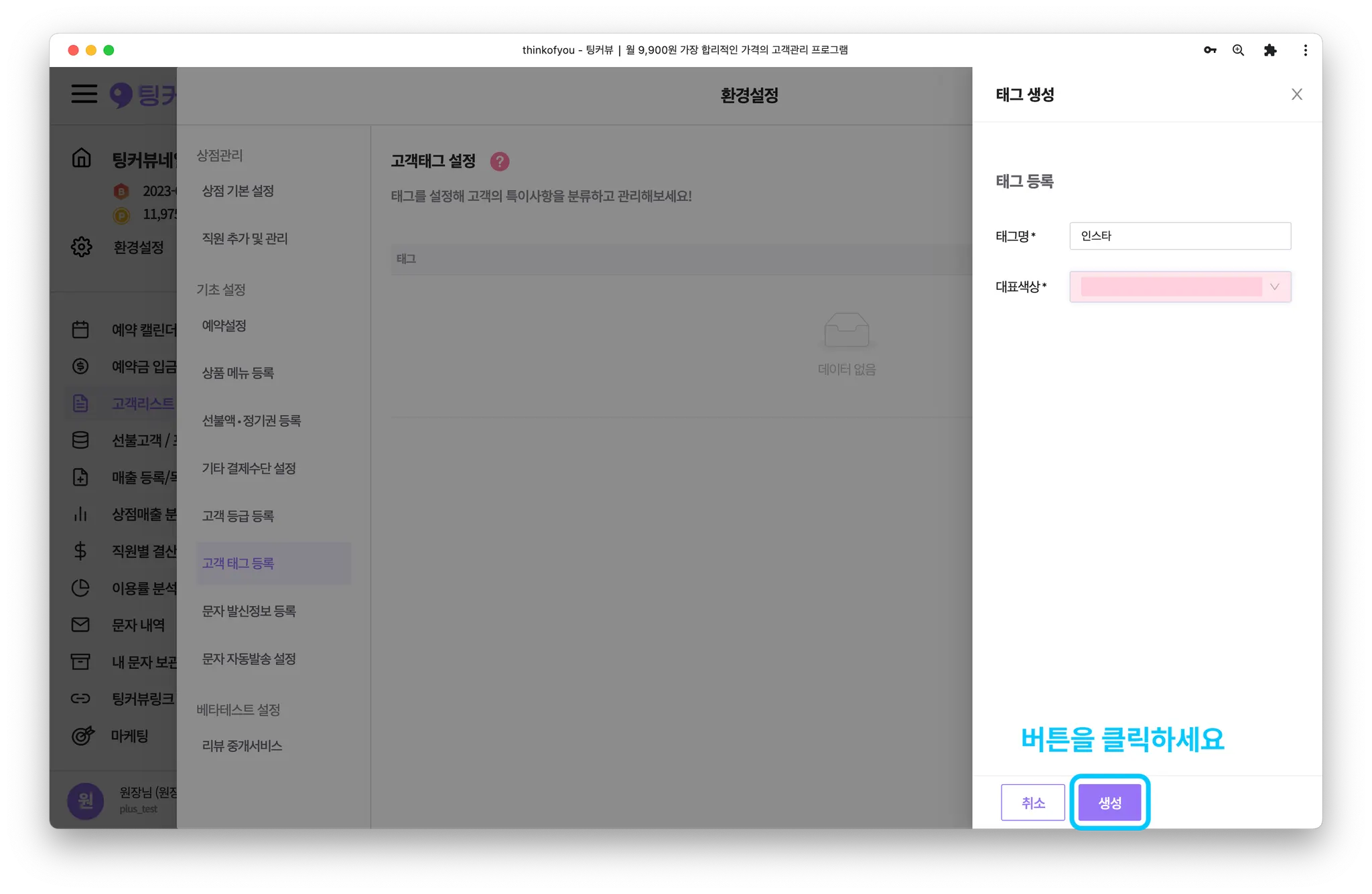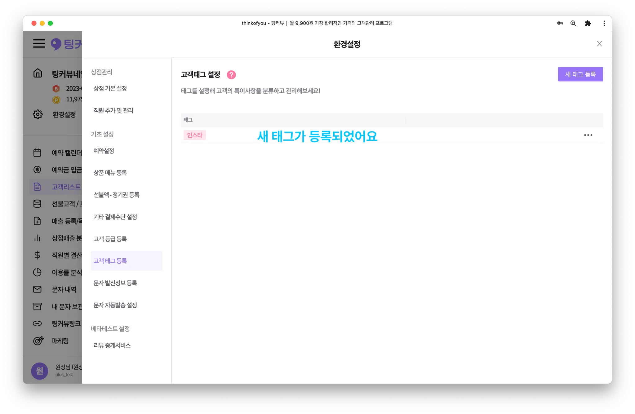 신규고객을 등록할 때 태그를 선택하고 등록하세요!
