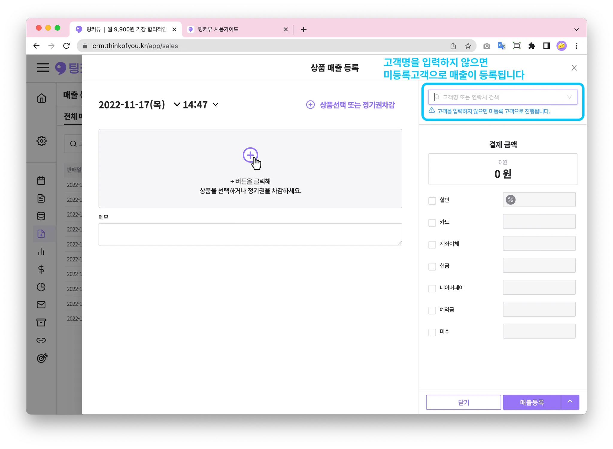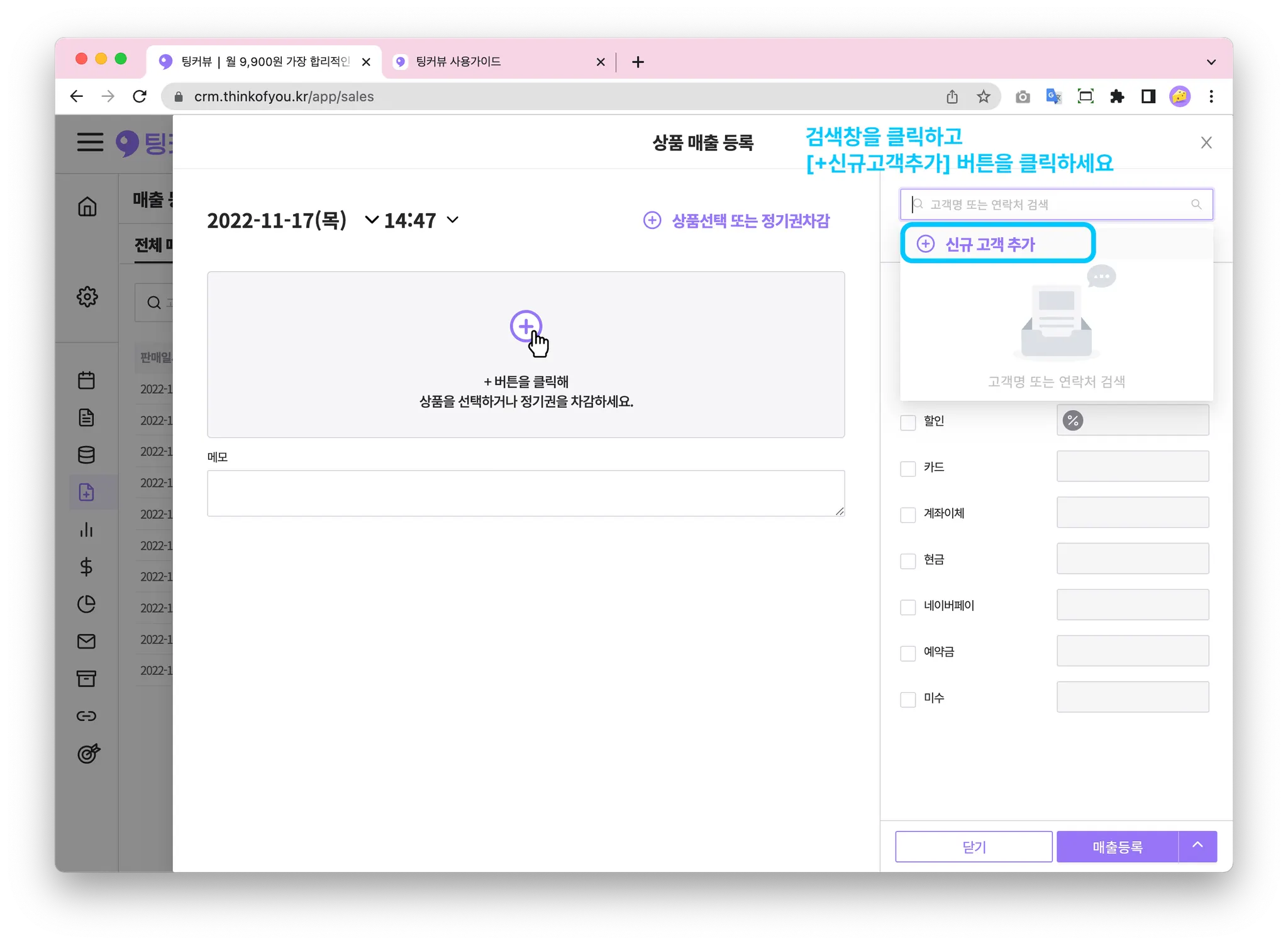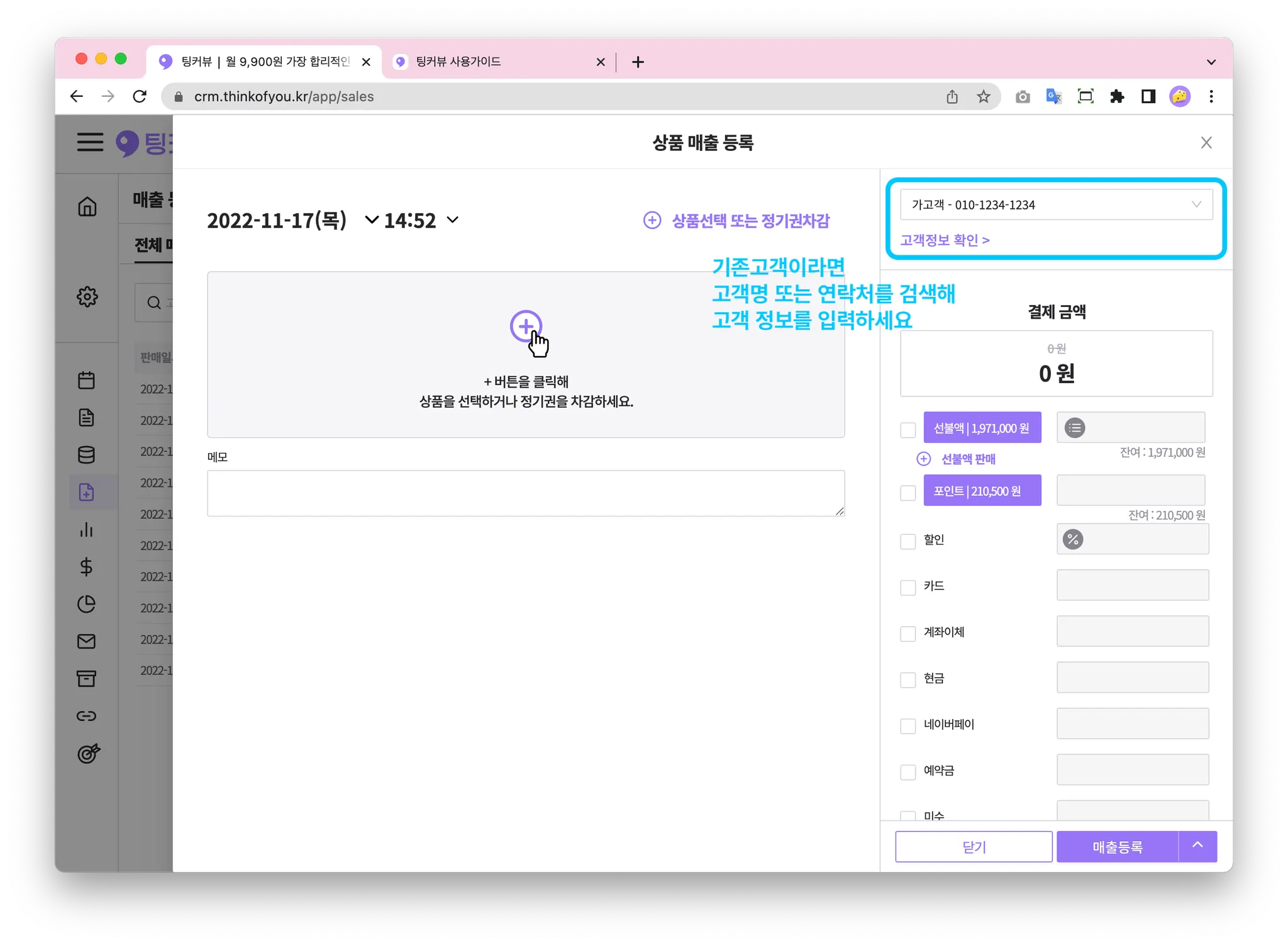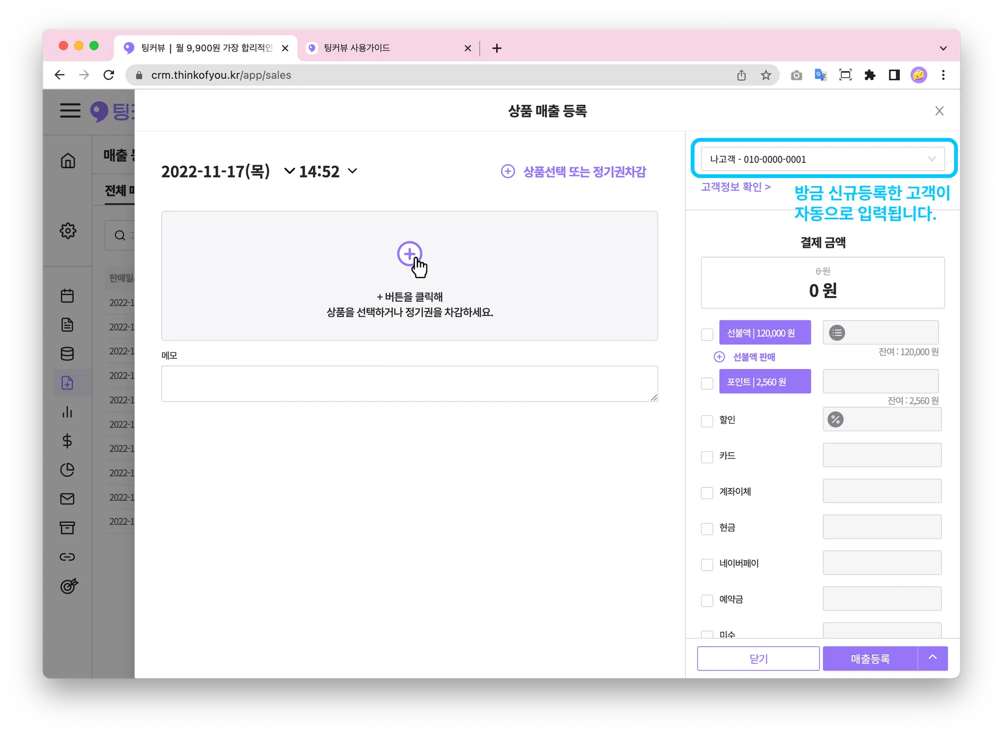 매출을 등록할 땐, 가장 먼저 고객정보를 입력해주세요!