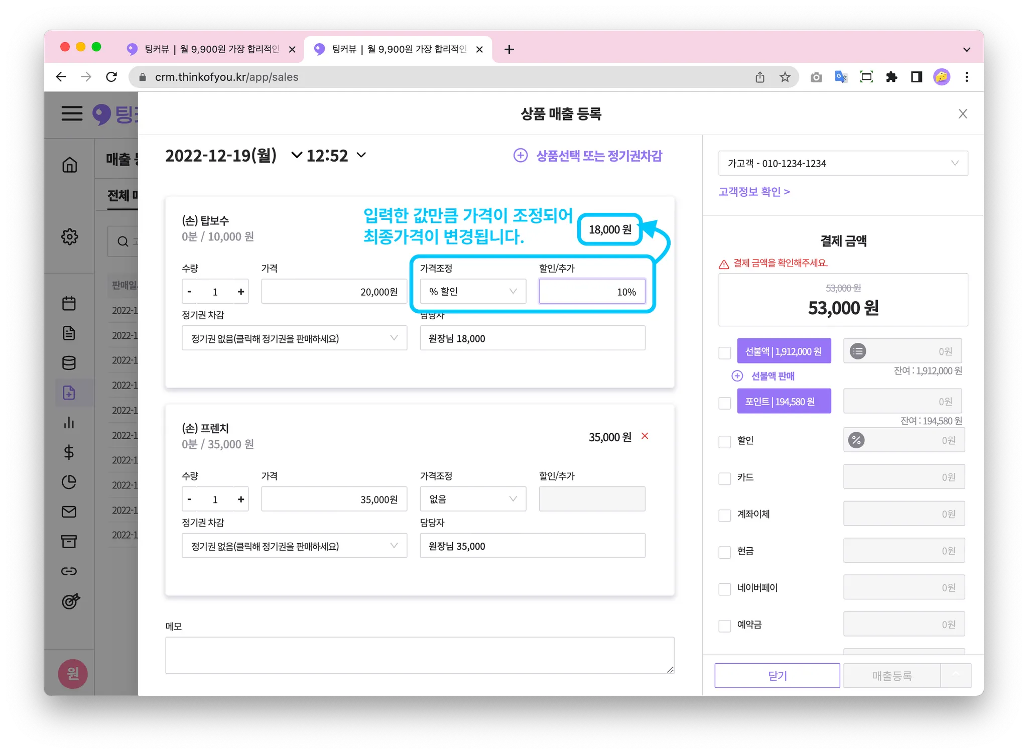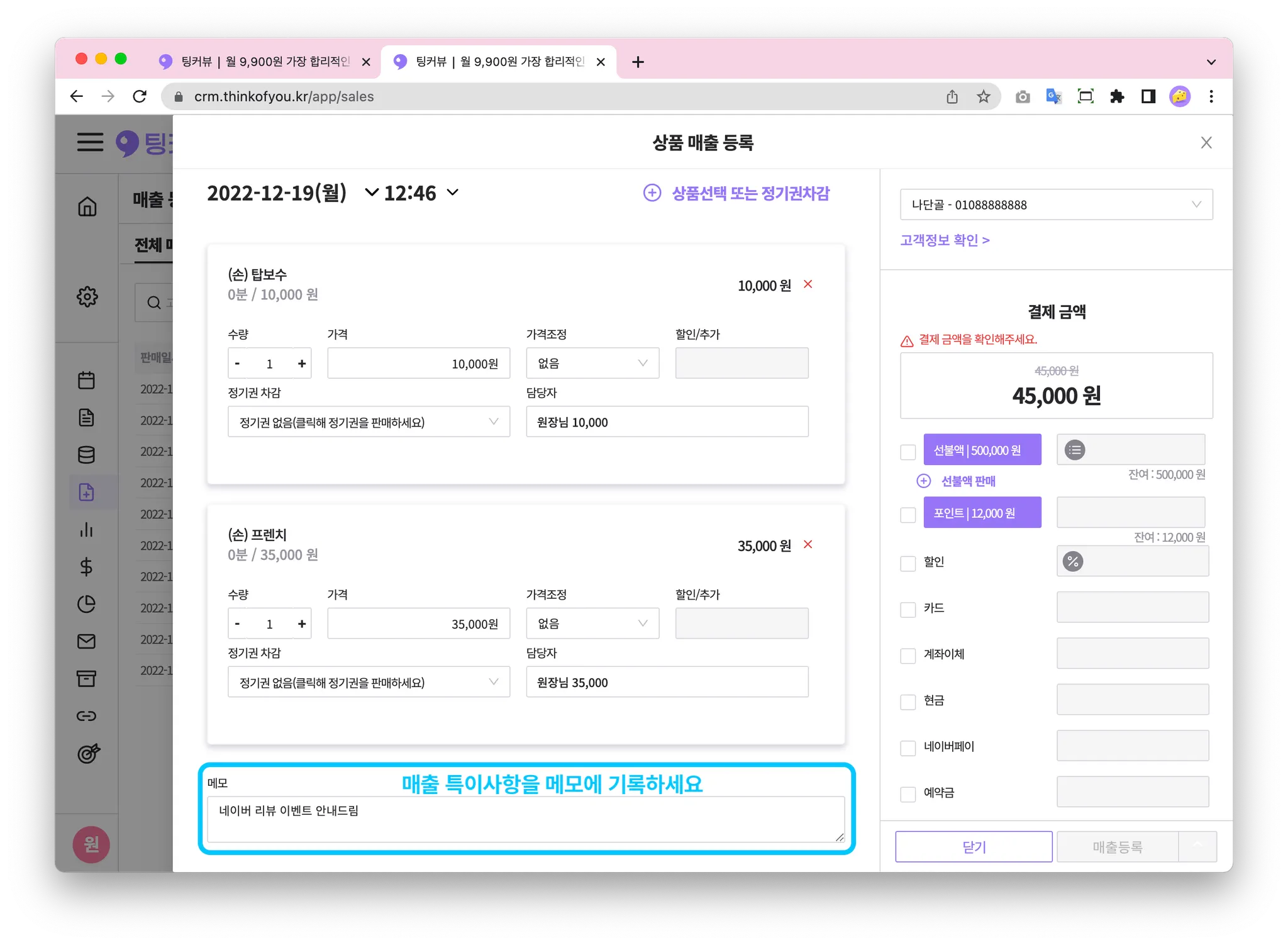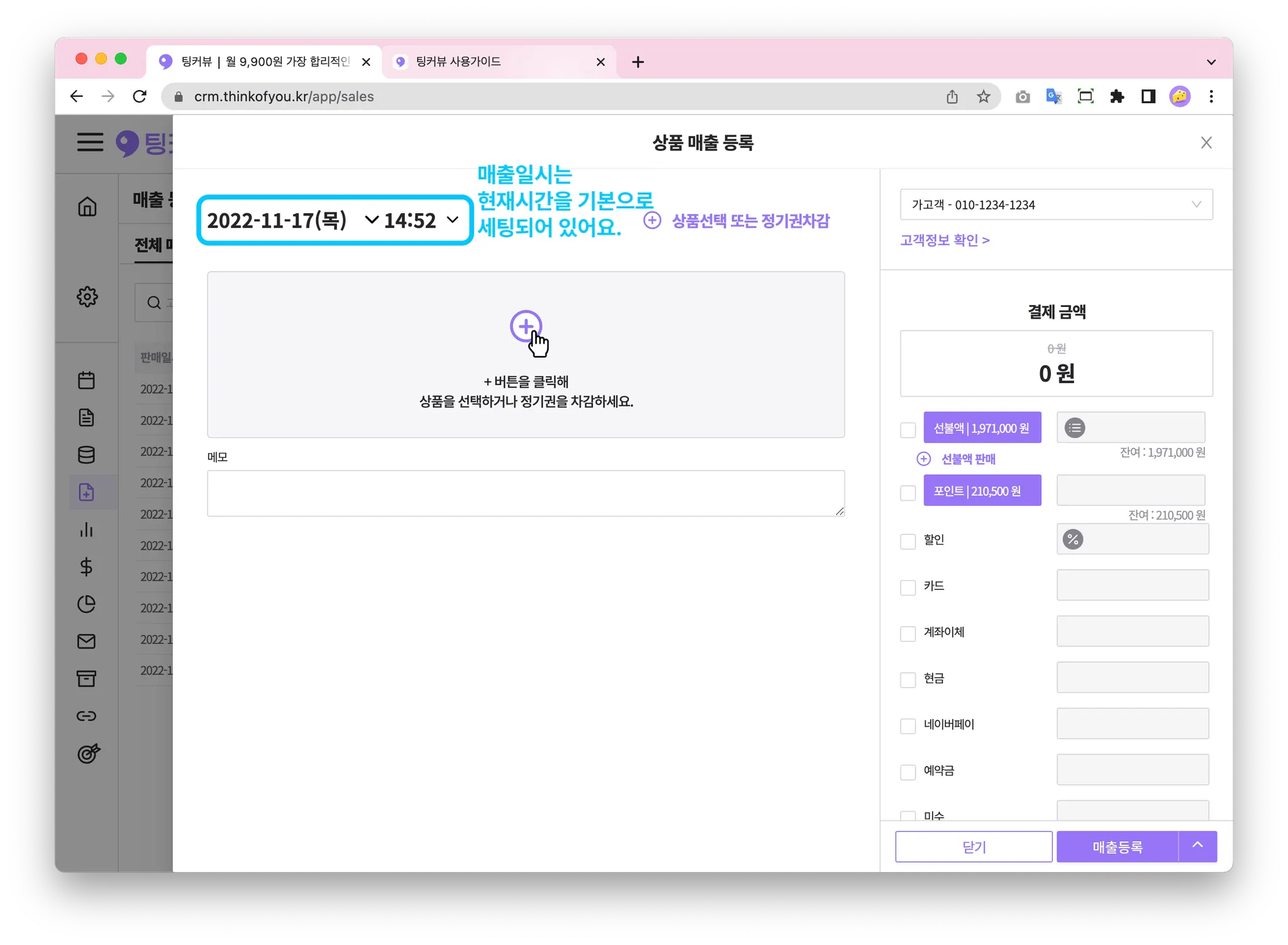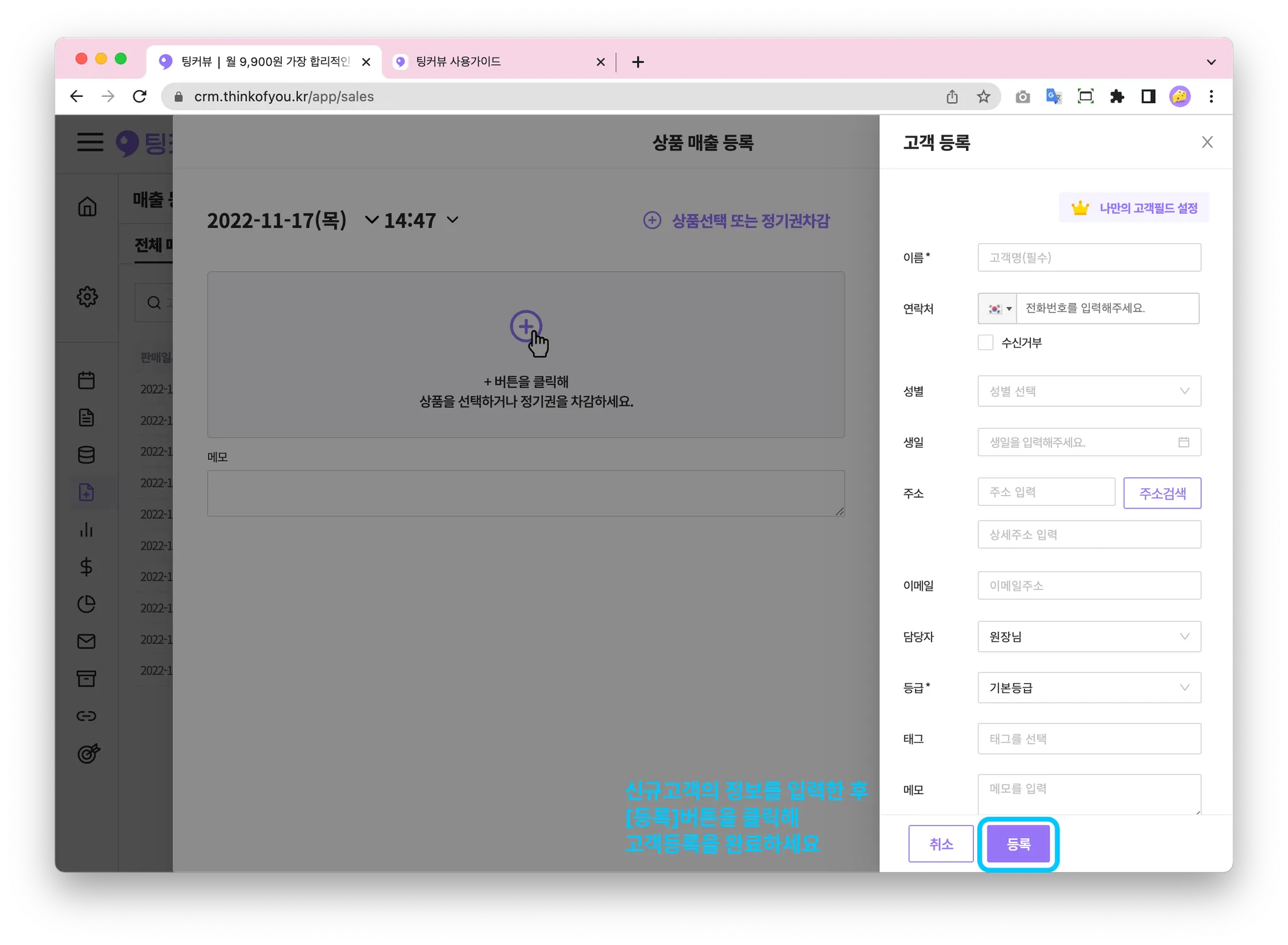 매출을 등록할 땐, 가장 먼저 고객정보를 입력해주세요!