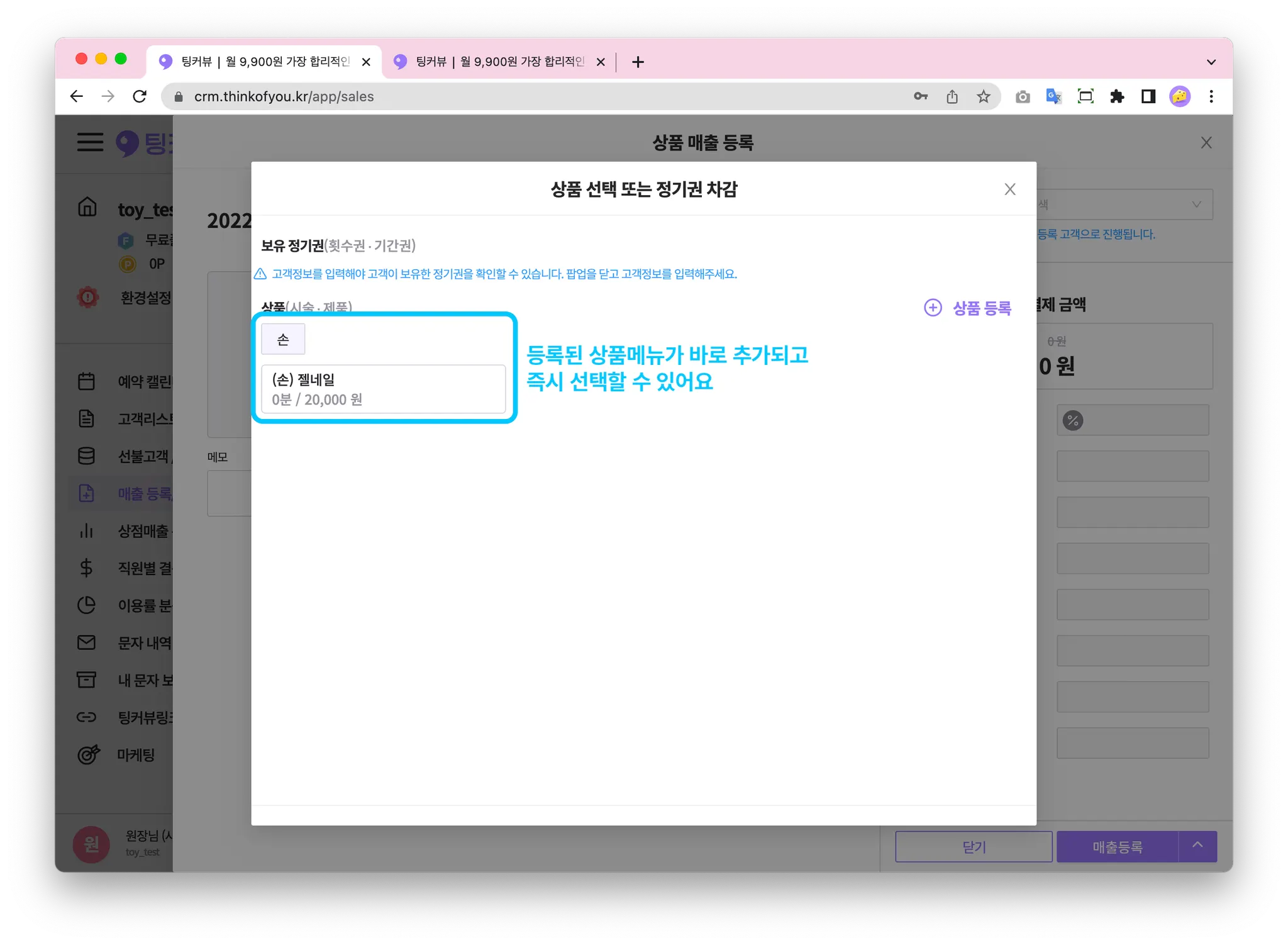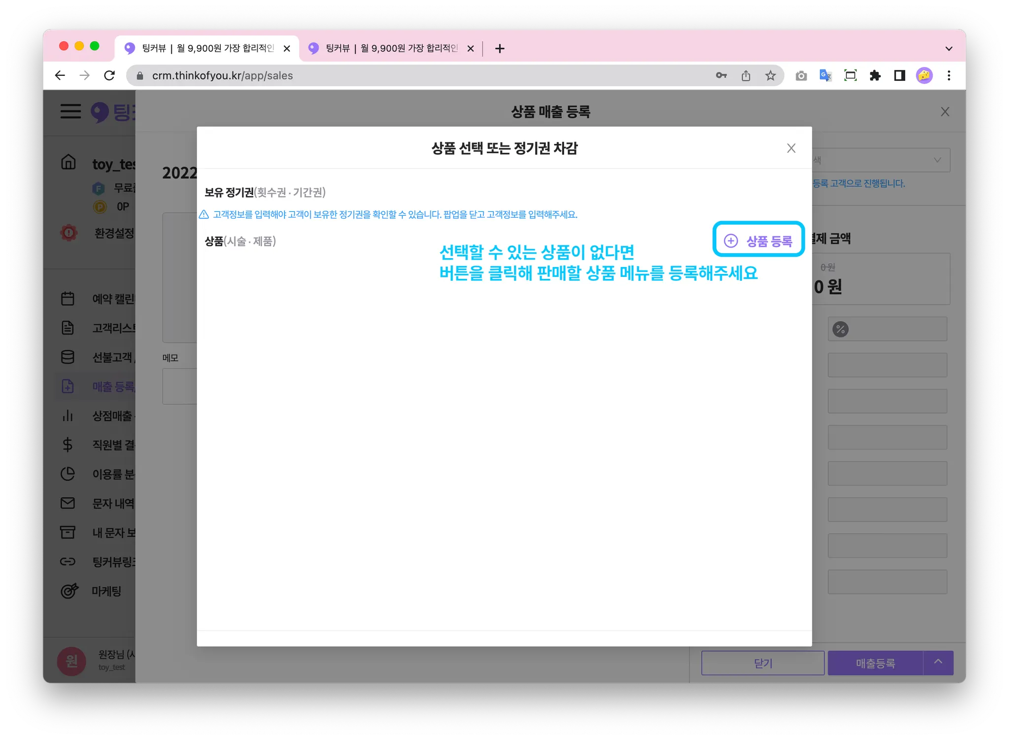 1. 매출등록/목록 메뉴에서 상품판매하기