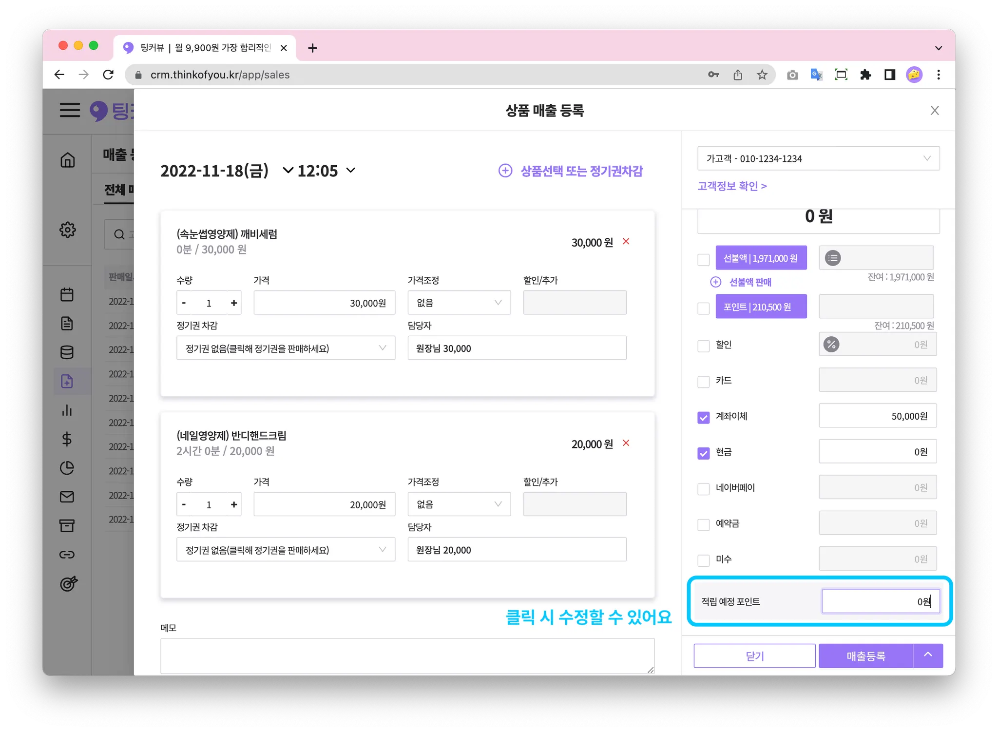 입력필드를 클릭해 적립포인트를 수정할 수 있어요!