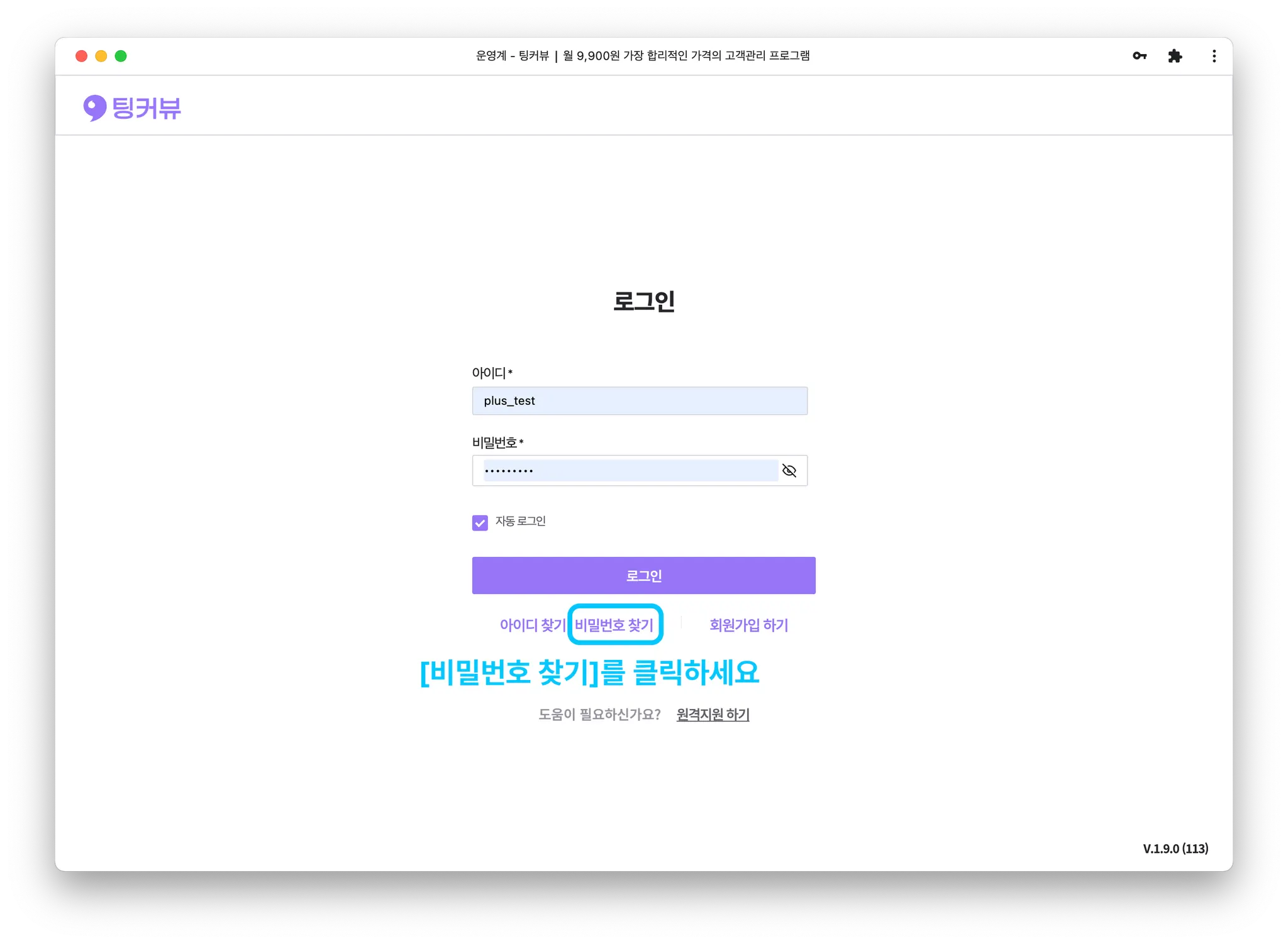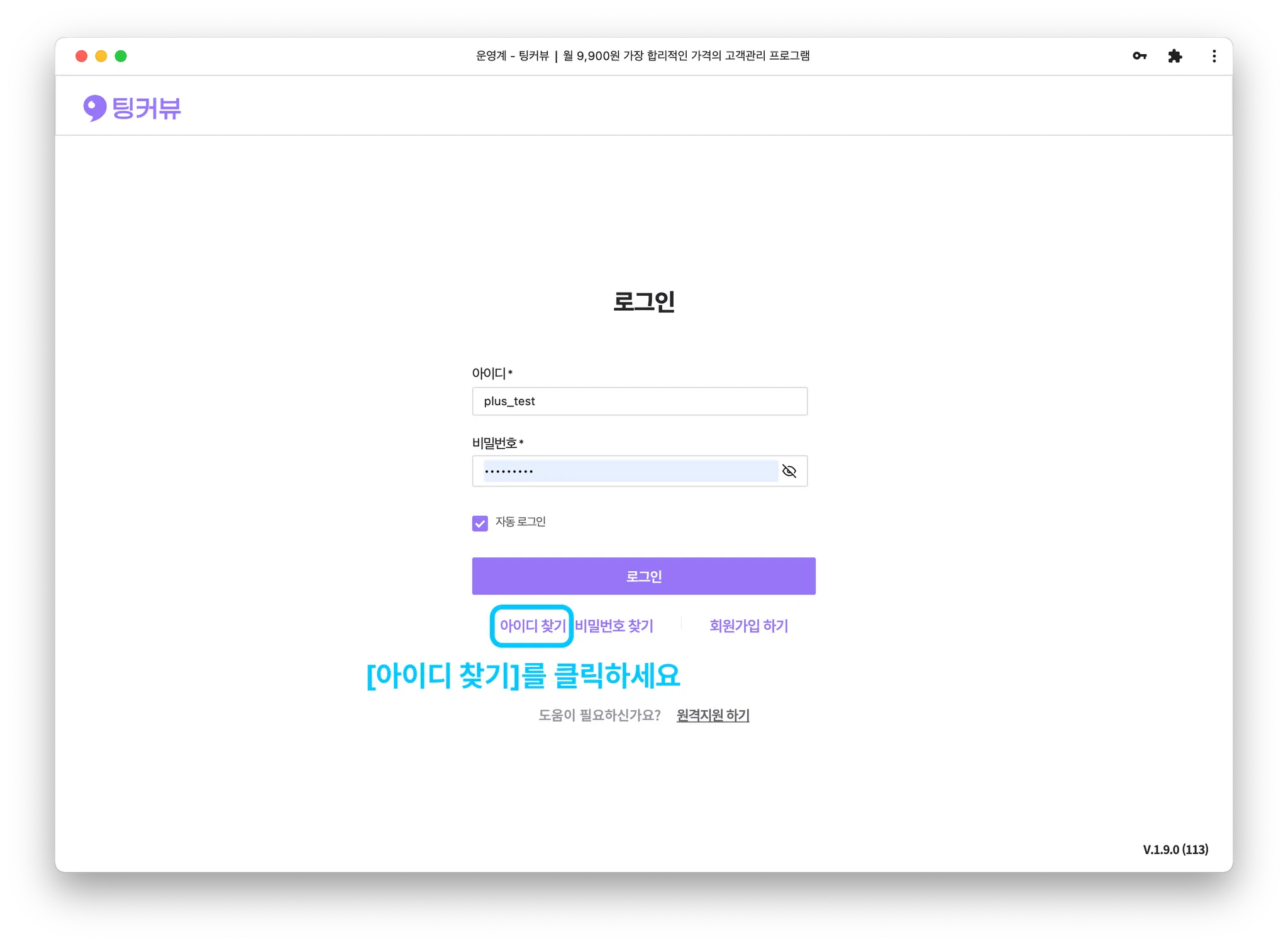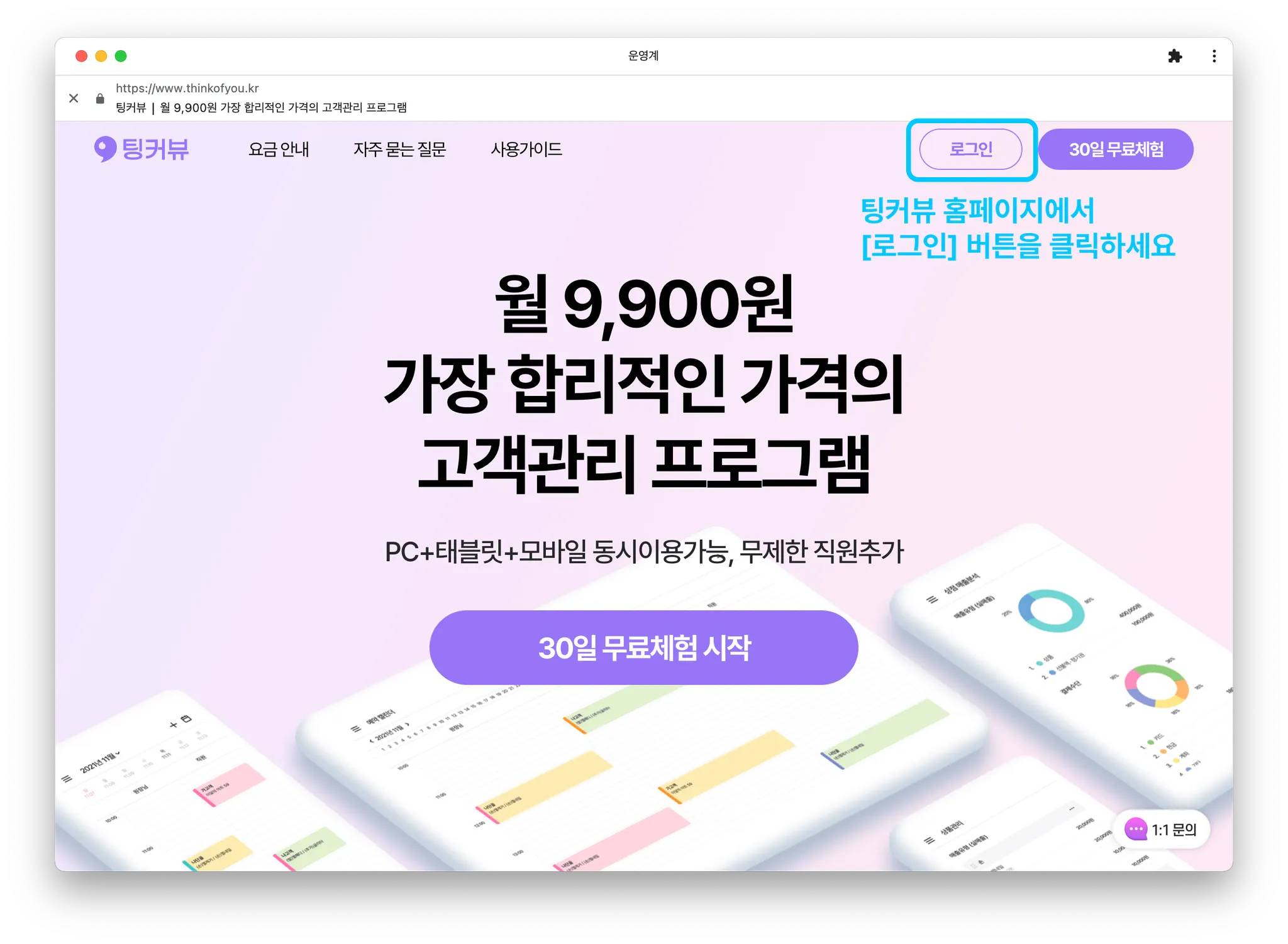 팅커뷰 홈페이지 상단의 [로그인] 버튼을 클릭해주세요.