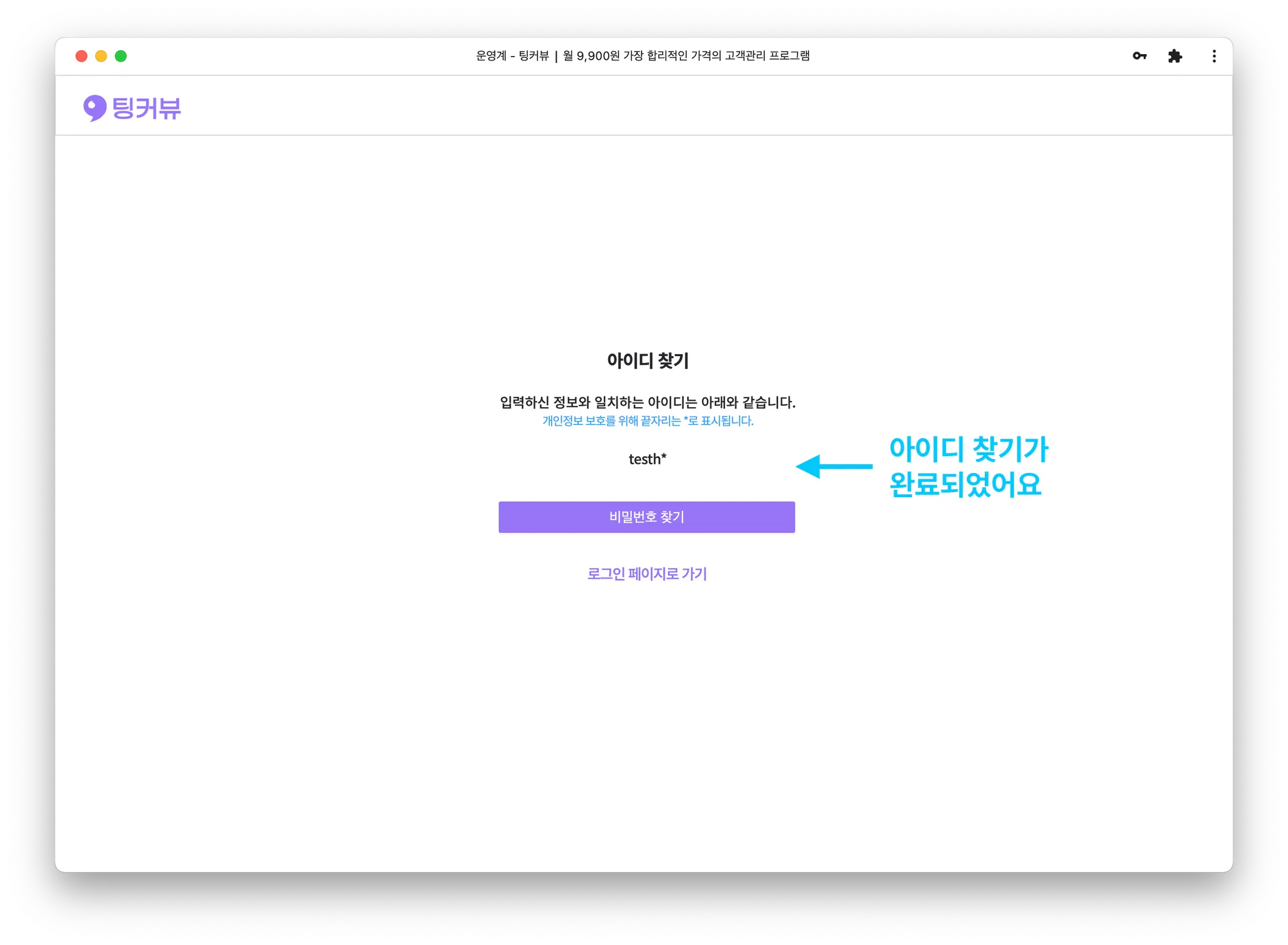 아이디 찾기가 완료되었어요!