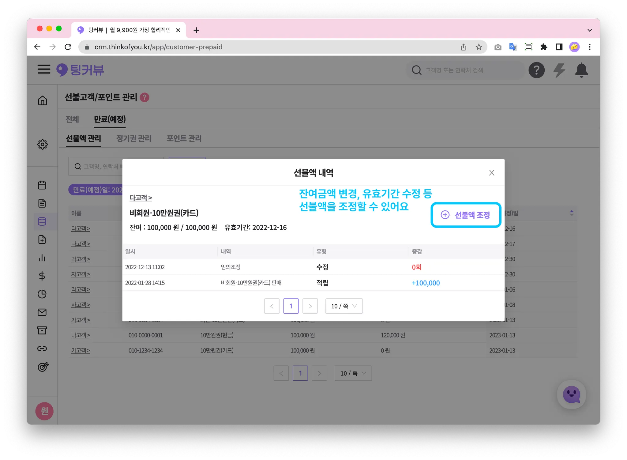 잔여금액을 변경하거나 유효기간을 변경할 수 있어요!