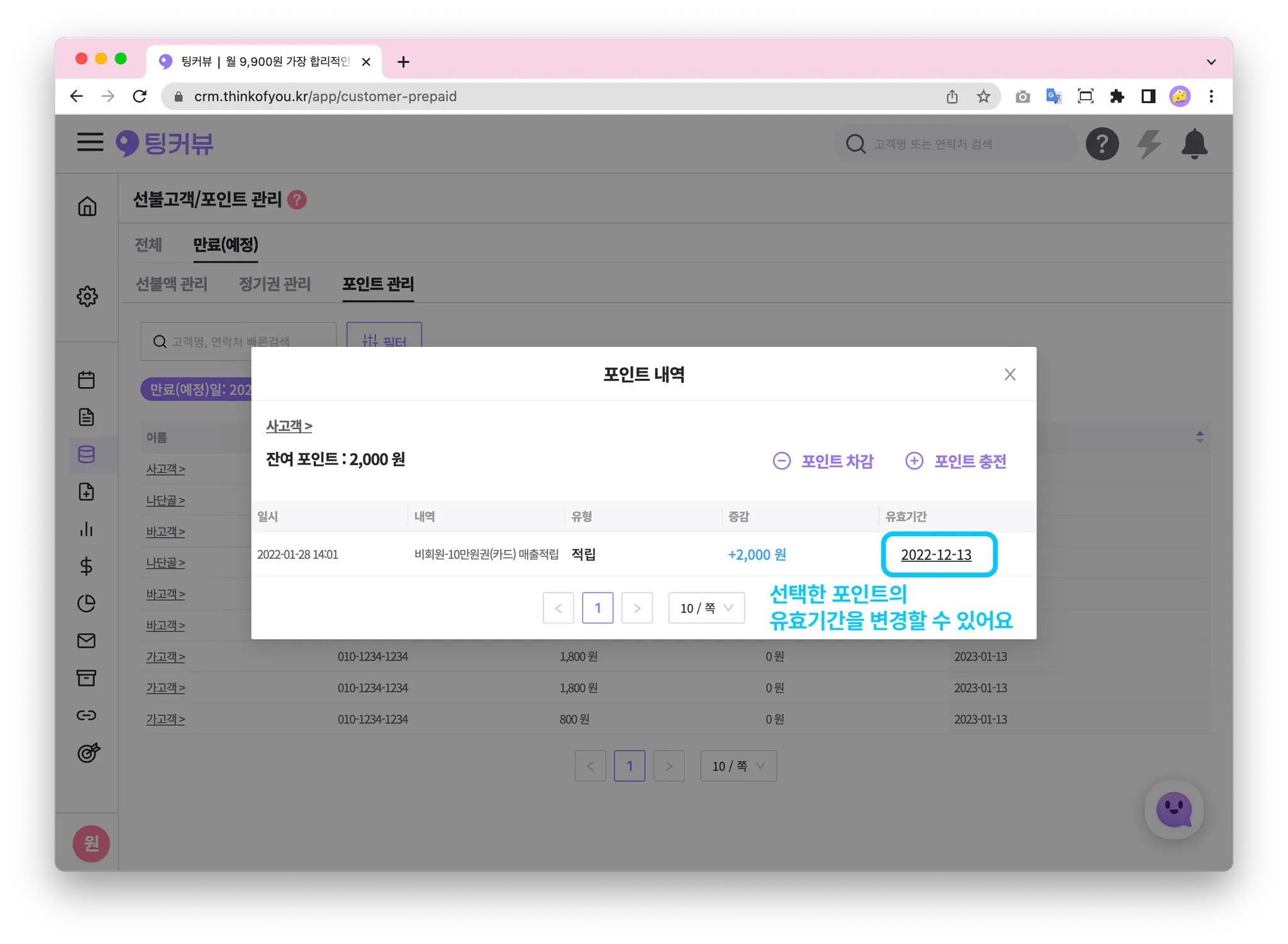 선택한 포인트의 유효기간을 변경할 수 있어요!