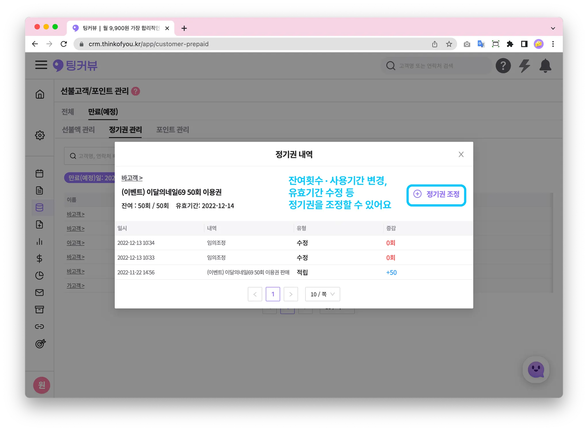 횟수권은 잔여횟수를 변경하거나 유효기간을 수정할 수 있어요